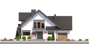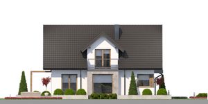 Graficzne opracowanie rzutów poglądowych widocznych na karcie projektu zostało wykonane przez Extradom.pl. Prezentowane przez Extradom.pl wizualizacje wykonane zostały przez autora projektu i należy poczytywać je jedynie za przykład i propozycję wykończenia, wizję architektoniczną autora projektu. Ostateczne wykończenie budynku może nastąpić na wiele sposobów. Szczegółowe rozwiązania zastosowane w oferowanej dokumentacji - w tym również ilość, lokalizacje i wygląd okien, drzwi, kominów - mogą w niewielkim stopniu różnić się od prezentowanej wizualizacji budynku.