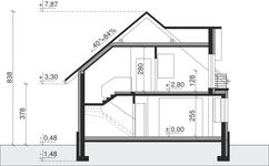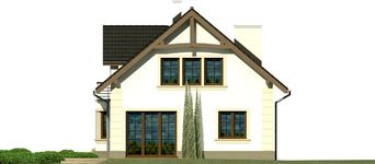 Graficzne opracowanie rzutów poglądowych widocznych na karcie projektu zostało wykonane przez Extradom.pl. Prezentowane przez Extradom.pl wizualizacje wykonane zostały przez autora projektu i należy poczytywać je jedynie za przykład i propozycję wykończenia, wizję architektoniczną autora projektu. Ostateczne wykończenie budynku może nastąpić na wiele sposobów. Szczegółowe rozwiązania zastosowane w oferowanej dokumentacji - w tym również ilość, lokalizacje i wygląd okien, drzwi, kominów - mogą w niewielkim stopniu różnić się od prezentowanej wizualizacji budynku.