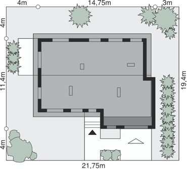 Graficzne opracowanie rzutów poglądowych widocznych na karcie projektu zostało wykonane przez Extradom.pl. Prezentowane przez Extradom.pl wizualizacje wykonane zostały przez autora projektu i należy poczytywać je jedynie za przykład i propozycję wykończenia, wizję architektoniczną autora projektu. Ostateczne wykończenie budynku może nastąpić na wiele sposobów. Szczegółowe rozwiązania zastosowane w oferowanej dokumentacji - w tym również ilość, lokalizacje i wygląd okien, drzwi, kominów - mogą w niewielkim stopniu różnić się od prezentowanej wizualizacji budynku.