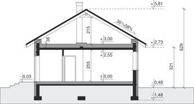 Ściany zewnętrzne: pustak 25 cm, styropian 20 cm. Ściany nośne: pustak 25 cm. Strop: monolityczny żelbetowy. Dach: kąt nachylenia 30°, pokrycie - dachówka ceramiczna lub betonowa. Instalacja solarna.