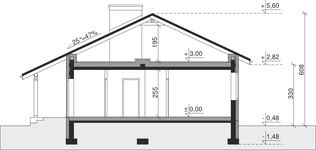 Ściany zewnętrzne: pustak 25 cm, styropian 20 cm. Ściany nośne: pustak 25 cm. Strop: monolityczny żelbetowy. Dach: kąt nachylenia 25°, pokrycie - dachówka ceramiczna lub betonowa. Instalacja solarna.