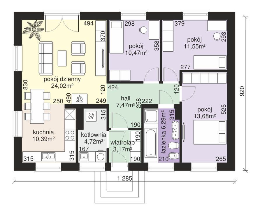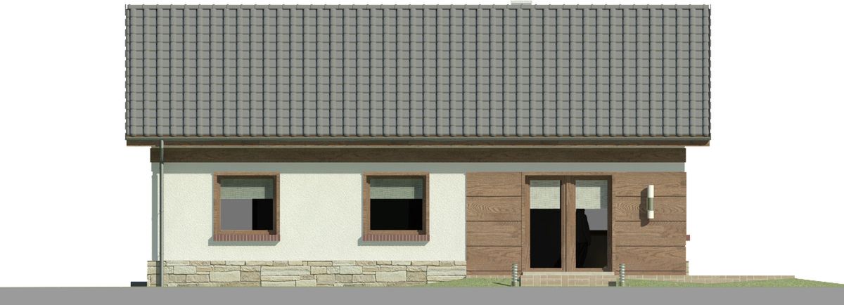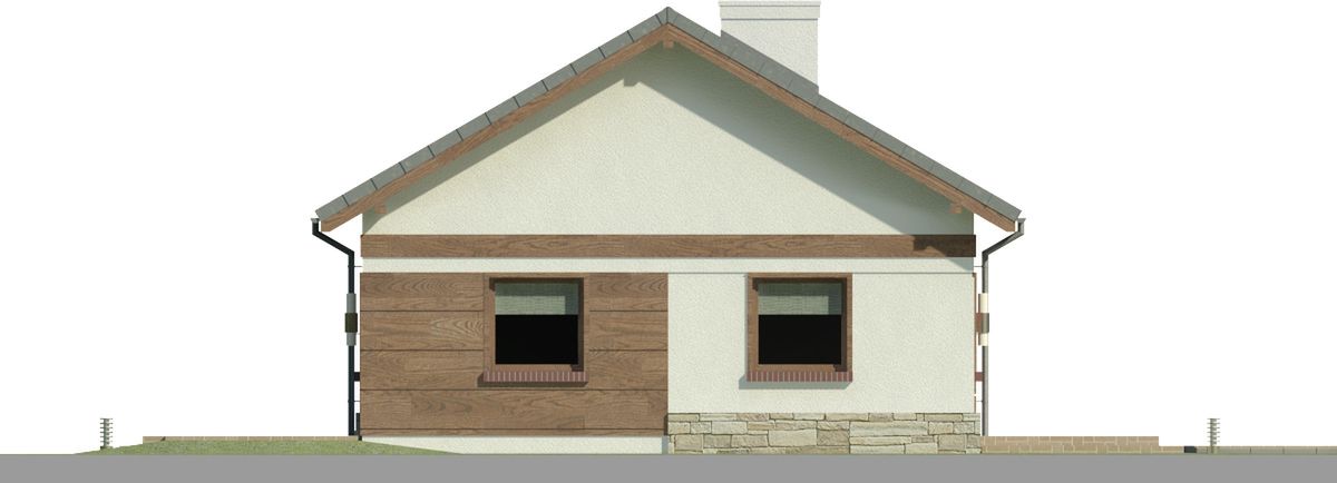 Graficzne opracowanie rzutów poglądowych widocznych na karcie projektu zostało wykonane przez Extradom.pl. Prezentowane przez Extradom.pl wizualizacje wykonane zostały przez autora projektu i należy poczytywać je jedynie za przykład i propozycję wykończenia, wizję architektoniczną autora projektu. Ostateczne wykończenie budynku może nastąpić na wiele sposobów. Szczegółowe rozwiązania zastosowane w oferowanej dokumentacji - w tym również ilość, lokalizacje i wygląd okien, drzwi, kominów - mogą w niewielkim stopniu różnić się od prezentowanej wizualizacji budynku.