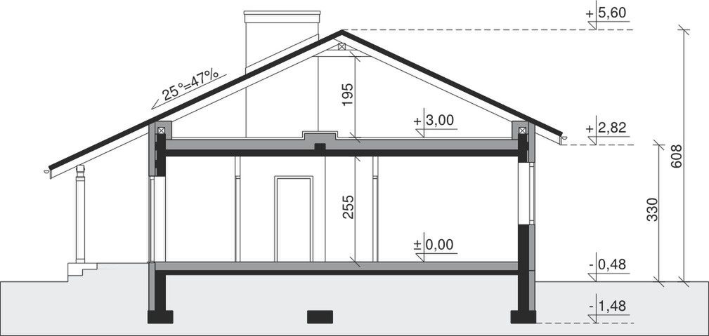 Ściany zewnętrzne: pustak ceramiczny 25 cm, styropian 15 cm. Ściany nośne: pustak ceramiczny 25 cm. Strop: monolityczny żelbetowy. Pokrycie dachu: dachówka ceramiczna lub betonowa.