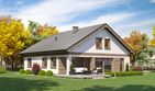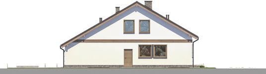 Graficzne opracowanie rzutów poglądowych widocznych na karcie projektu zostało wykonane przez Extradom.pl. Prezentowane przez Extradom.pl wizualizacje wykonane zostały przez autora projektu i należy poczytywać je jedynie za przykład i propozycję wykończenia, wizję architektoniczną autora projektu. Ostateczne wykończenie budynku może nastąpić na wiele sposobów. Szczegółowe rozwiązania zastosowane w oferowanej dokumentacji - w tym również ilość, lokalizacje i wygląd okien, drzwi, kominów - mogą w niewielkim stopniu różnić się od prezentowanej wizualizacji budynku.