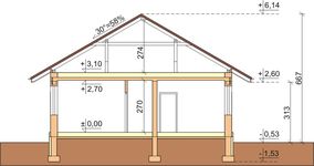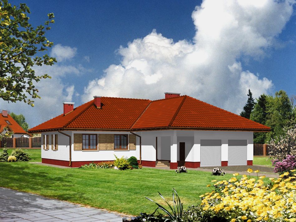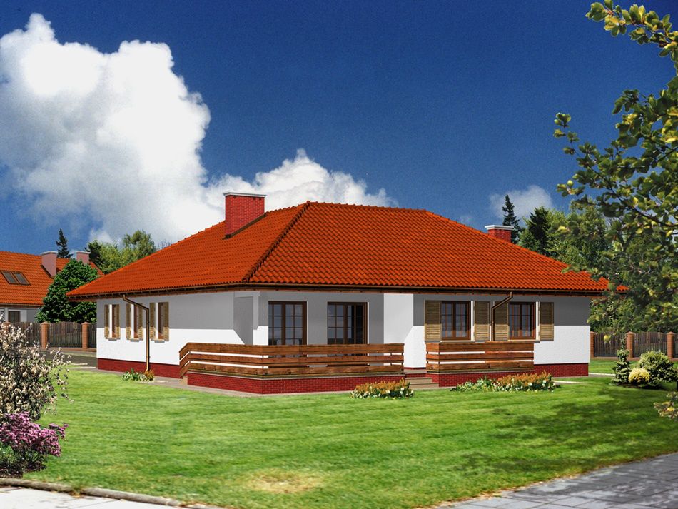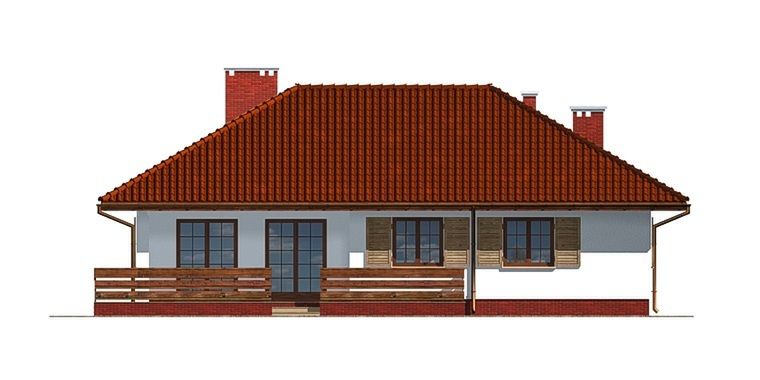 Graficzne opracowanie rzutów poglądowych widocznych na karcie projektu zostało wykonane przez Extradom.pl. Prezentowane przez Extradom.pl wizualizacje wykonane zostały przez autora projektu i należy poczytywać je jedynie za przykład i propozycję wykończenia, wizję architektoniczną autora projektu. Ostateczne wykończenie budynku może nastąpić na wiele sposobów. Szczegółowe rozwiązania zastosowane w oferowanej dokumentacji - w tym również ilość, lokalizacje i wygląd okien, drzwi, kominów - mogą w niewielkim stopniu różnić się od prezentowanej wizualizacji budynku.