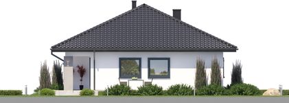 Graficzne opracowanie rzutów poglądowych widocznych na karcie projektu zostało wykonane przez Extradom.pl. Prezentowane przez Extradom.pl wizualizacje wykonane zostały przez autora projektu i należy poczytywać je jedynie za przykład i propozycję wykończenia, wizję architektoniczną autora projektu. Ostateczne wykończenie budynku może nastąpić na wiele sposobów. Szczegółowe rozwiązania zastosowane w oferowanej dokumentacji - w tym również ilość, lokalizacje i wygląd okien, drzwi, kominów - mogą w niewielkim stopniu różnić się od prezentowanej wizualizacji budynku.