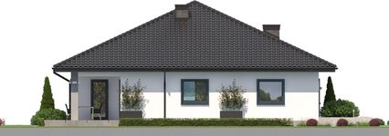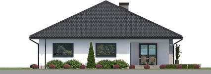 Graficzne opracowanie rzutów poglądowych widocznych na karcie projektu zostało wykonane przez Extradom.pl. Prezentowane przez Extradom.pl wizualizacje wykonane zostały przez autora projektu i należy poczytywać je jedynie za przykład i propozycję wykończenia, wizję architektoniczną autora projektu. Ostateczne wykończenie budynku może nastąpić na wiele sposobów. Szczegółowe rozwiązania zastosowane w oferowanej dokumentacji - w tym również ilość, lokalizacje i wygląd okien, drzwi, kominów - mogą w niewielkim stopniu różnić się od prezentowanej wizualizacji budynku.