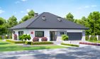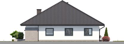 Graficzne opracowanie rzutów poglądowych widocznych na karcie projektu zostało wykonane przez Extradom.pl. Prezentowane przez Extradom.pl wizualizacje wykonane zostały przez autora projektu i należy poczytywać je jedynie za przykład i propozycję wykończenia, wizję architektoniczną autora projektu. Ostateczne wykończenie budynku może nastąpić na wiele sposobów. Szczegółowe rozwiązania zastosowane w oferowanej dokumentacji - w tym również ilość, lokalizacje i wygląd okien, drzwi, kominów - mogą w niewielkim stopniu różnić się od prezentowanej wizualizacji budynku.