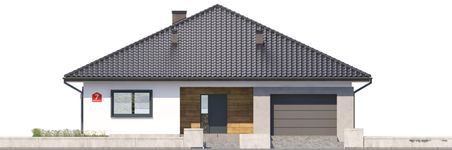 Graficzne opracowanie rzutów poglądowych widocznych na karcie projektu zostało wykonane przez Extradom.pl. Prezentowane przez Extradom.pl wizualizacje wykonane zostały przez autora projektu i należy poczytywać je jedynie za przykład i propozycję wykończenia, wizję architektoniczną autora projektu. Ostateczne wykończenie budynku może nastąpić na wiele sposobów. Szczegółowe rozwiązania zastosowane w oferowanej dokumentacji - w tym również ilość, lokalizacje i wygląd okien, drzwi, kominów - mogą w niewielkim stopniu różnić się od prezentowanej wizualizacji budynku.