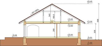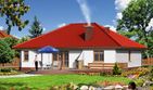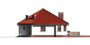 Graficzne opracowanie rzutów poglądowych widocznych na karcie projektu zostało wykonane przez Extradom.pl. Prezentowane przez Extradom.pl wizualizacje wykonane zostały przez autora projektu i należy poczytywać je jedynie za przykład i propozycję wykończenia, wizję architektoniczną autora projektu. Ostateczne wykończenie budynku może nastąpić na wiele sposobów. Szczegółowe rozwiązania zastosowane w oferowanej dokumentacji - w tym również ilość, lokalizacje i wygląd okien, drzwi, kominów - mogą w niewielkim stopniu różnić się od prezentowanej wizualizacji budynku.
