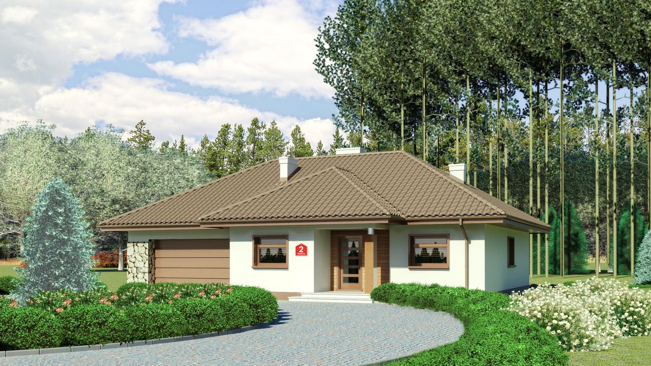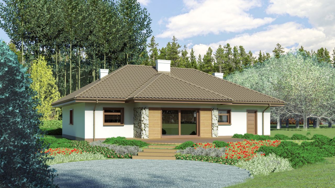 Przy wyborze odpowiedniego projektu domu najważniejszym kryterium było dla nas to, aby wszystkie pomieszczenia znajdowały się na jednym poziomie. Spośród propozycji spełniających to wymaganie zdecydowaliśmy się na realizację projektu Dom przy Sadowej 2 KRK1309, który w całości bardzo przypadł nam do gustu. Istotny wpływ na nasz wybór miał układ pomieszczeń. Wydał nam się wyjątkowo praktycznie zaplanowany i komfortowy w codziennym użytkowaniu. Mimo iż od początku zależało nam na budynku parterowym, w tym przypadku spodobała nam się również możliwość zaadaptowania poddasza, jeśli w przyszłości zaszłaby taka potrzeba.Cała inwestycja przebiegła pomyślnie. Do jej zrealizowania zatrudniliśmy kilka osobnych firm, więc dopięcie kwestii organizacyjnych nie było do końca łatwą sprawą, ale na szczęście nie było to nic bardzo znaczącego i wszystko udało się zakończyć z sukcesem. Dokumentacja techniczna pod względem konstrukcyjnym została sporządzona jak najbardziej poprawnie. Pierwsze prace rozpoczęliśmy w listopadzie 2014 r., a do nowego domu wprowadziliśmy się w marcu 2016 roku. Budowa trwała więc ok. 1,5 roku, aczkolwiek i tak nieco przeciągnęła się ze względu na nieterminowość niektórych fachowców. Myślę więc, że przy odpowiednim zgraniu, taki dom można postawić jeszcze szybciej.Do wymurowania ścian użyliśmy ceramicznych pustaków Porotherm. Strop wykonaliśmy w tradycyjnej, lanej betonem konstrukcji, zaś dach pokryliśmy blachodachówką. Uważam, że architekt poprawnie oszacował koszty realizacji projektu domu parterowego Dom przy Sadowej 2 KRK1309 na etapie stanu surowego zamkniętego. Przy zastosowaniu powyższych materiałów udało nam się w nim zmieścić i myślę, że inni jego Inwestorzy również mogą sugerować się podaną kwotą.Za radą mojego taty postanowiłem zwiększyć zalecaną w projekcie warstwę izolacyjną. W naszym przypadku bryła została ocieplona styropianem o grubości 20 cm, a kilka dodatkowych centymetrów zastosowałem również na stropie. W kotłowni zainstalowałem piec na paliwo stałe, w którym palimy ekogroszkiem. Mamy z żoną małe dzieci, dlatego został on włączony już we wrześniu i w sumie paliliśmy w nim pół roku, gdyż zima trochę się przeciągnęła. Przez cały ten okres zużyliśmy ok. 3,5 ton opału łącznie z grzaniem wody użytkowej.Projekt domu Dom przy Sadowej 2 KRK1309 od początku spełniał nasze oczekiwania, dlatego w zdecydowanej większości wykonaliśmy go zgodnie z oryginałem. Postanowiliśmy jednak zrezygnować z mniejszej łazienki przyłączając jej powierzchnię do znajdującego się obok pomieszczenia technicznego i murując jednocześnie przejście między nim a kuchnią. W tym miejscu zrobiliśmy również wyłaz na strych. Oprócz lekko powiększyliśmy wiatrołap nieco przesuwając tworzącą go ściankę w głąb hallu. Aby cała konstrukcja zmieściła się w granicach naszej działki, zmieniliśmy kształt tarasu na prostokątny. Ponadto, w dachu wstawiliśmy dwa okna połaciowe.Jesteśmy zadowoleni z wyboru projektu domu Dom przy Sadowej 2 KRK1309. Zgodnie z założeniami układ pomieszczeń jest naprawdę funkcjonalny i jak dla nas posiada same plusy. Obecnie jedyne czego nieco nam brakuje to jeszcze jeden, dodatkowy pokój, ale myślę że w przyszłości uda nam się go wygospodarować na wyższej kondygnacji. Pozdrawiam.