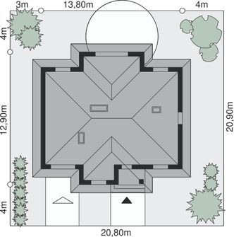Ściany zewnętrzne: pustak 25 cm, styropian 20 cm. Ściany nośne: pustak 25 cm. Strop: monolityczny żelbetowy. Dach: kąt nachylenia 30°, pokrycie - dachówka ceramiczna lub betonowa. Instalacja solarna.