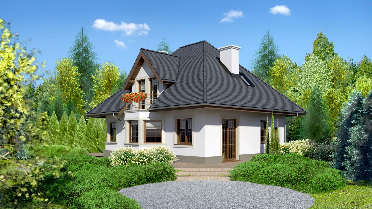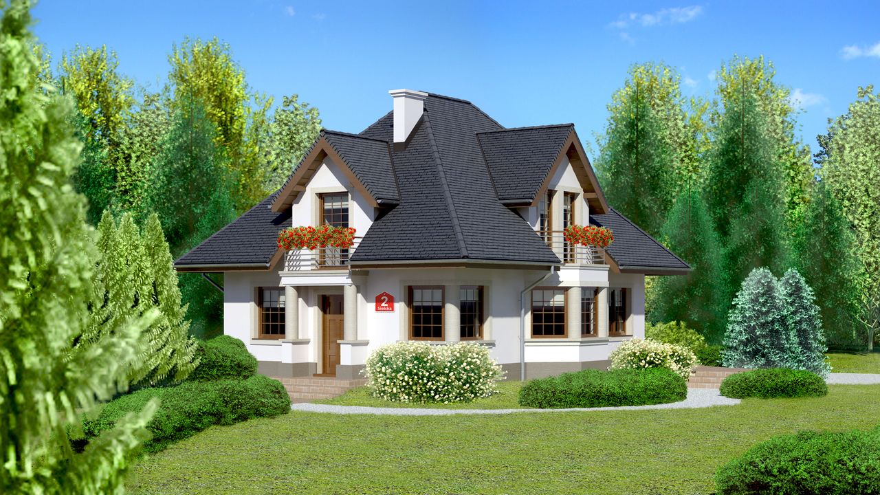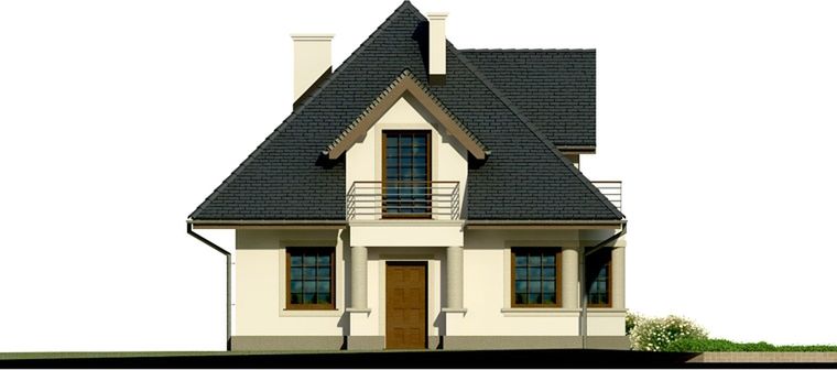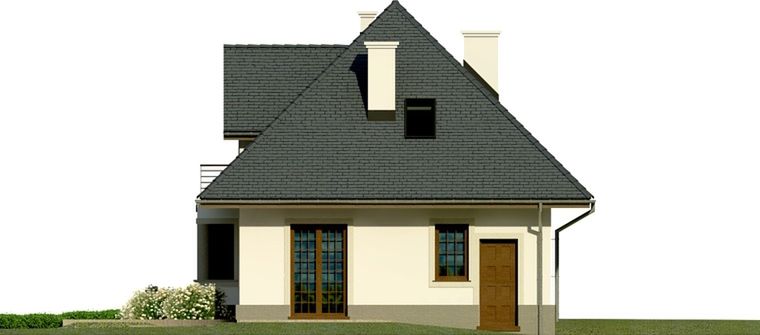 Graficzne opracowanie rzutów poglądowych widocznych na karcie projektu zostało wykonane przez Extradom.pl. Prezentowane przez Extradom.pl wizualizacje wykonane zostały przez autora projektu i należy poczytywać je jedynie za przykład i propozycję wykończenia, wizję architektoniczną autora projektu. Ostateczne wykończenie budynku może nastąpić na wiele sposobów. Szczegółowe rozwiązania zastosowane w oferowanej dokumentacji - w tym również ilość, lokalizacje i wygląd okien, drzwi, kominów - mogą w niewielkim stopniu różnić się od prezentowanej wizualizacji budynku.