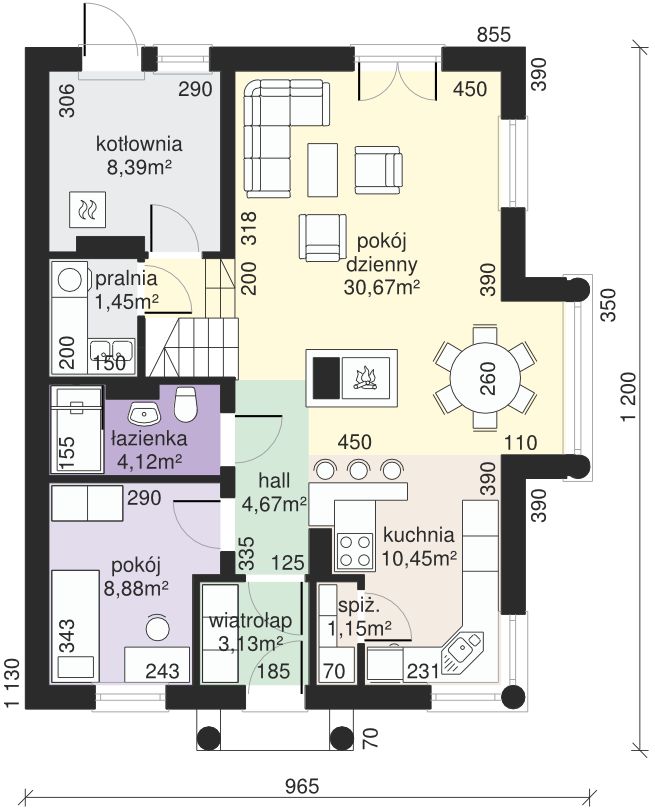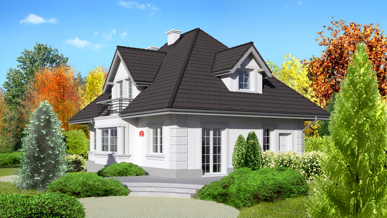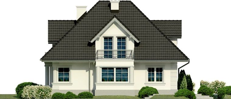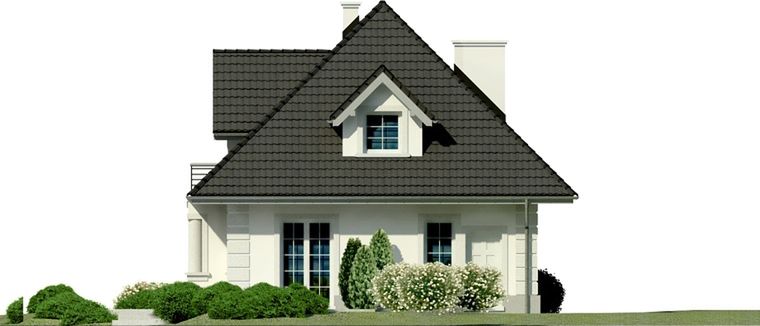 Graficzne opracowanie rzutów poglądowych widocznych na karcie projektu zostało wykonane przez Extradom.pl. Prezentowane przez Extradom.pl wizualizacje wykonane zostały przez autora projektu i należy poczytywać je jedynie za przykład i propozycję wykończenia, wizję architektoniczną autora projektu. Ostateczne wykończenie budynku może nastąpić na wiele sposobów. Szczegółowe rozwiązania zastosowane w oferowanej dokumentacji - w tym również ilość, lokalizacje i wygląd okien, drzwi, kominów - mogą w niewielkim stopniu różnić się od prezentowanej wizualizacji budynku.