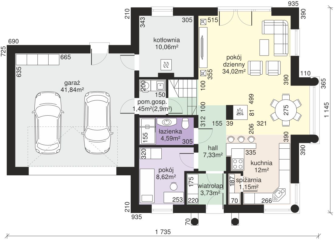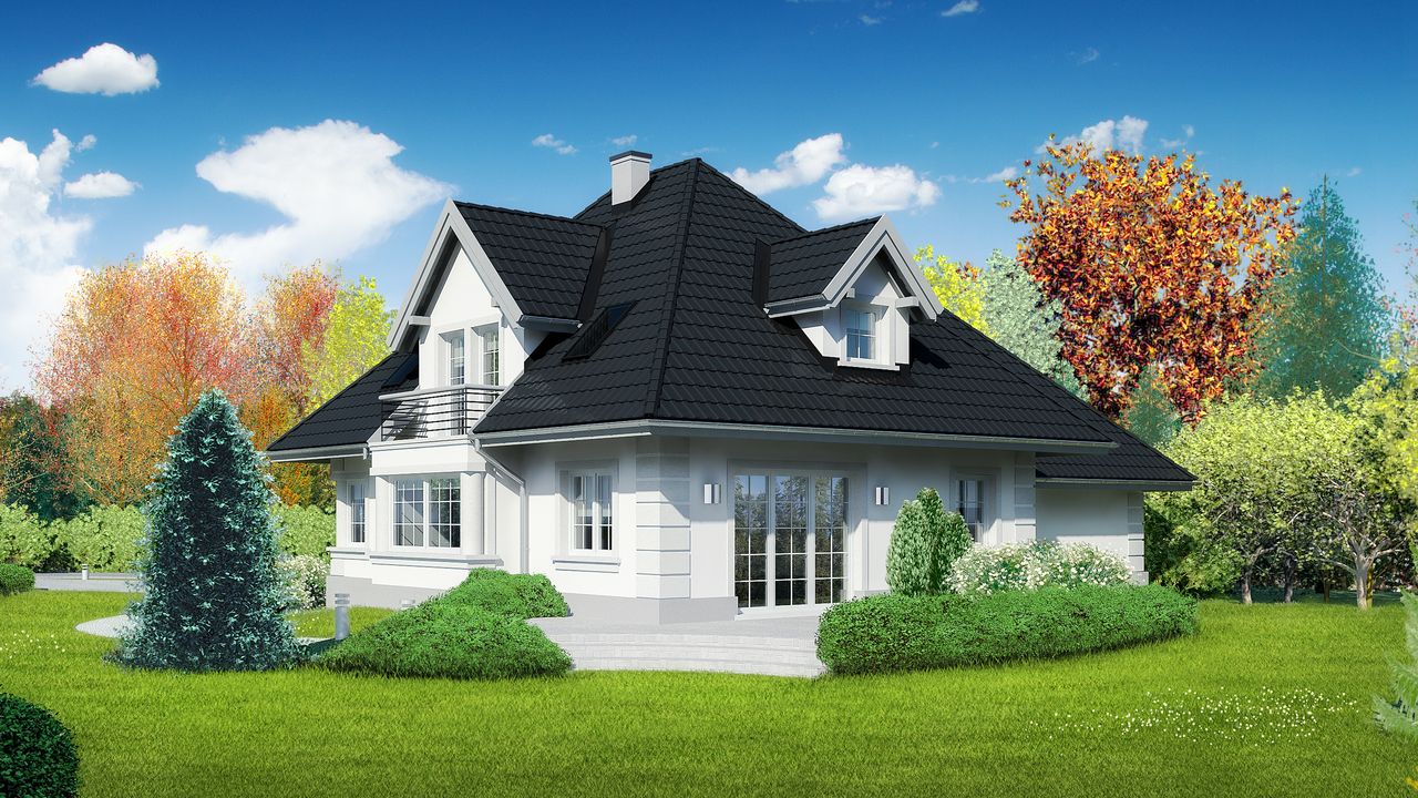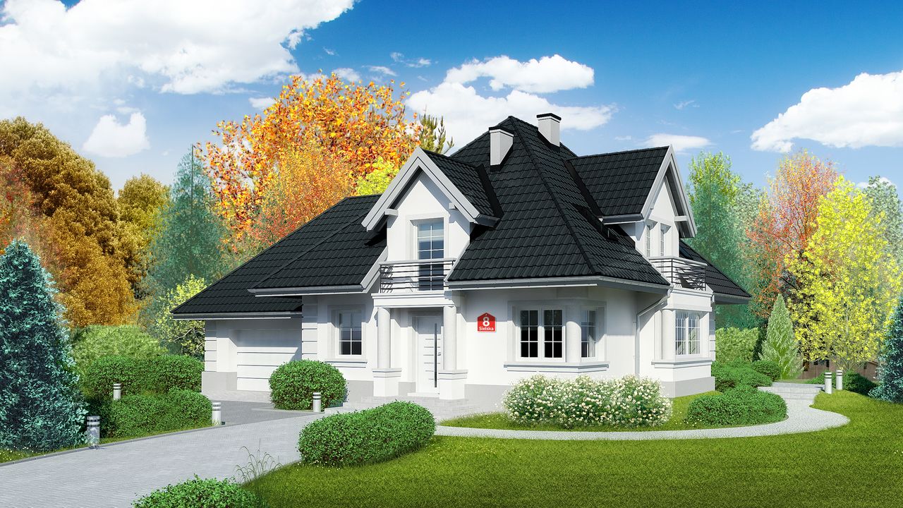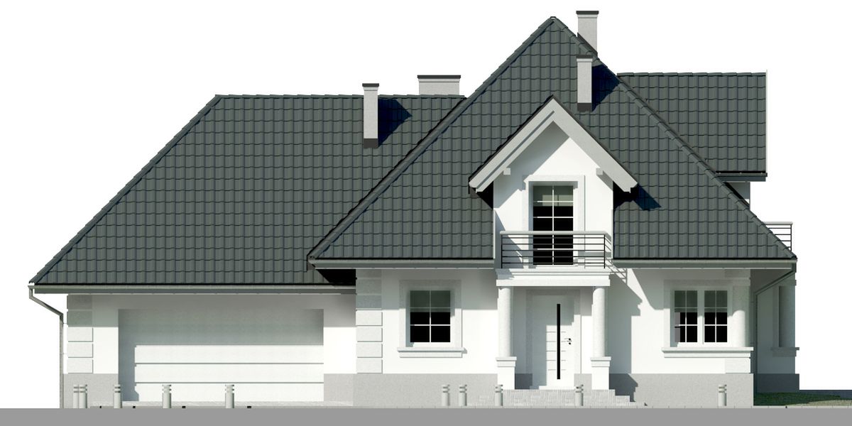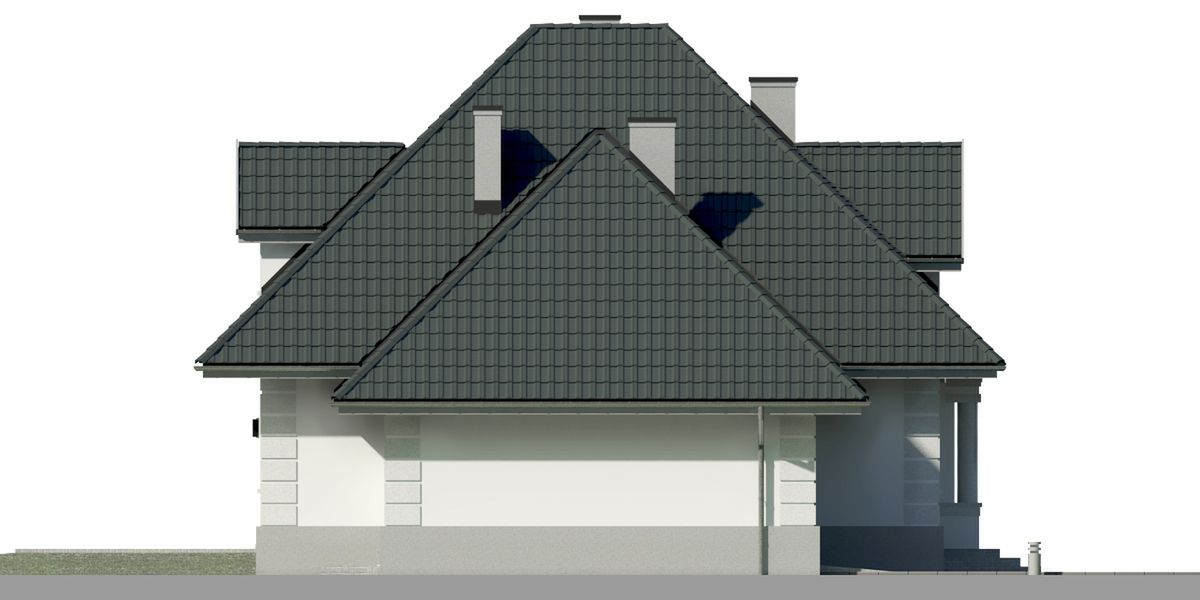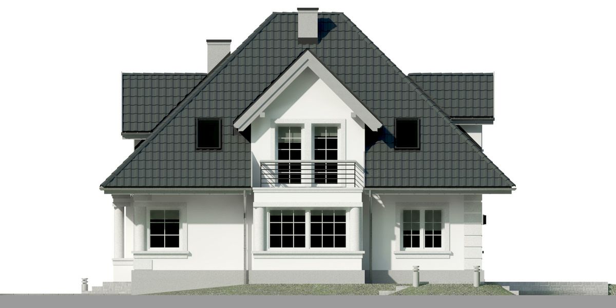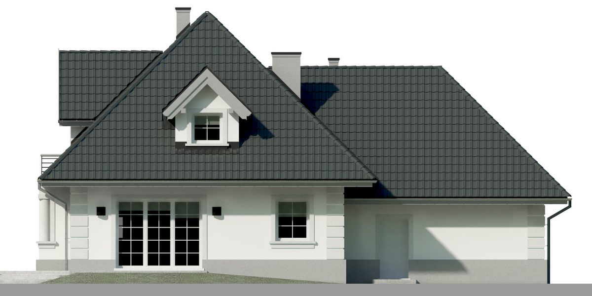 Graficzne opracowanie rzutów poglądowych widocznych na karcie projektu zostało wykonane przez Extradom.pl. Prezentowane przez Extradom.pl wizualizacje wykonane zostały przez autora projektu i należy poczytywać je jedynie za przykład i propozycję wykończenia, wizję architektoniczną autora projektu. Ostateczne wykończenie budynku może nastąpić na wiele sposobów. Szczegółowe rozwiązania zastosowane w oferowanej dokumentacji - w tym również ilość, lokalizacje i wygląd okien, drzwi, kominów - mogą w niewielkim stopniu różnić się od prezentowanej wizualizacji budynku.