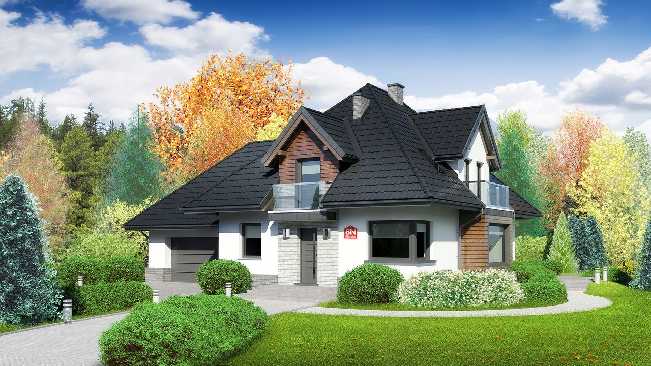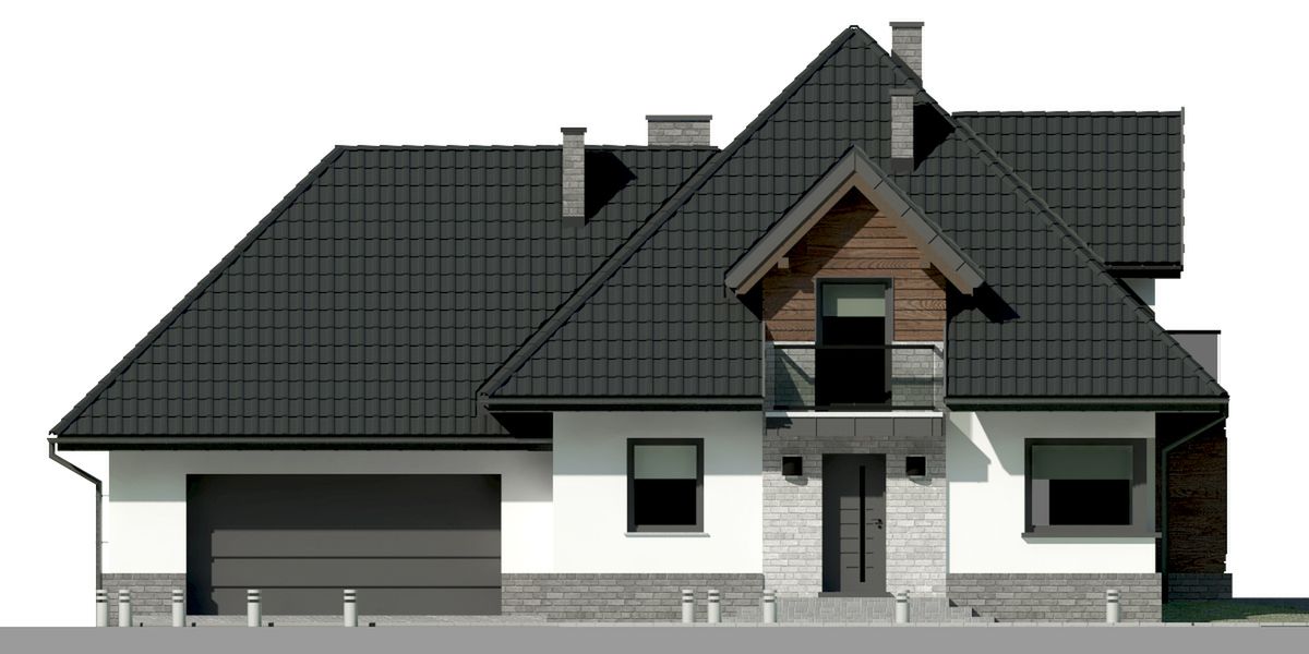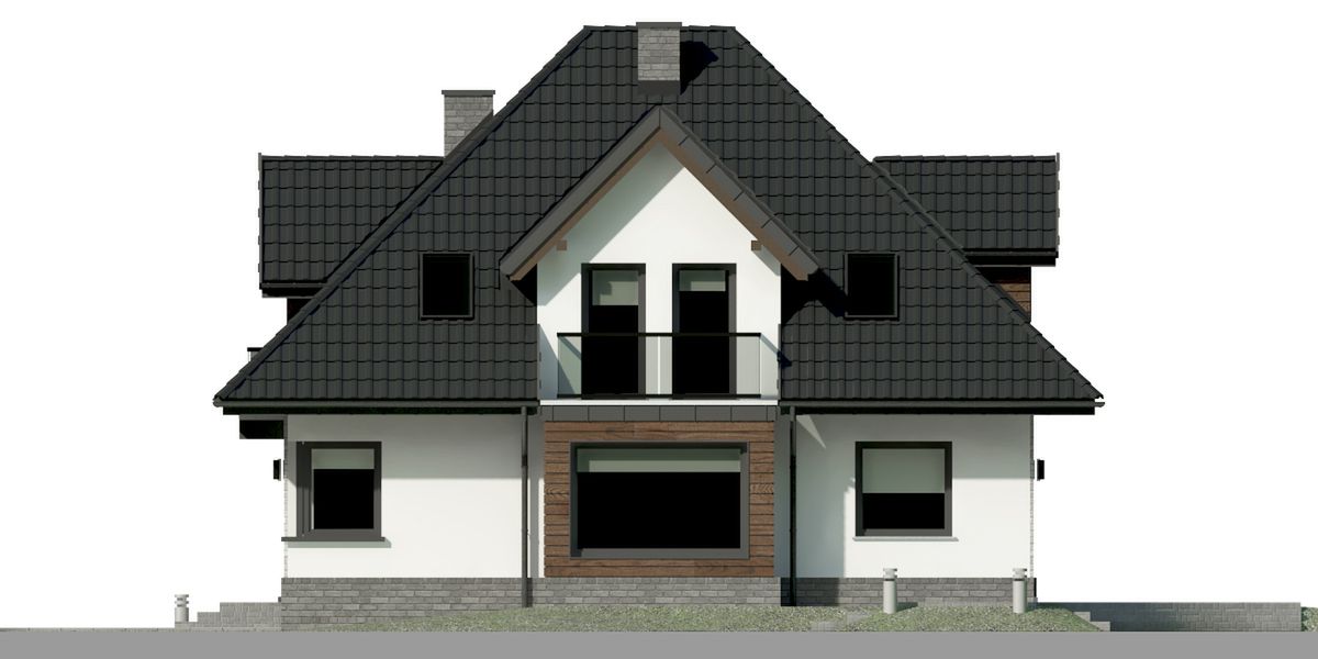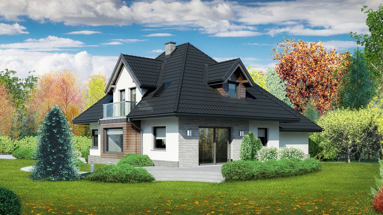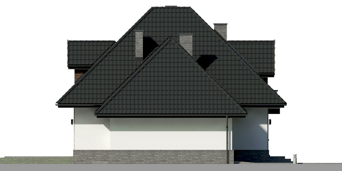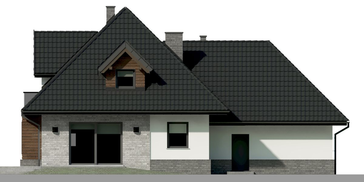 Graficzne opracowanie rzutów poglądowych widocznych na karcie projektu zostało wykonane przez Extradom.pl. Prezentowane przez Extradom.pl wizualizacje wykonane zostały przez autora projektu i należy poczytywać je jedynie za przykład i propozycję wykończenia, wizję architektoniczną autora projektu. Ostateczne wykończenie budynku może nastąpić na wiele sposobów. Szczegółowe rozwiązania zastosowane w oferowanej dokumentacji - w tym również ilość, lokalizacje i wygląd okien, drzwi, kominów - mogą w niewielkim stopniu różnić się od prezentowanej wizualizacji budynku.