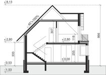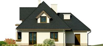 Graficzne opracowanie rzutów poglądowych widocznych na karcie projektu zostało wykonane przez Extradom.pl. Prezentowane przez Extradom.pl wizualizacje wykonane zostały przez autora projektu i należy poczytywać je jedynie za przykład i propozycję wykończenia, wizję architektoniczną autora projektu. Ostateczne wykończenie budynku może nastąpić na wiele sposobów. Szczegółowe rozwiązania zastosowane w oferowanej dokumentacji - w tym również ilość, lokalizacje i wygląd okien, drzwi, kominów - mogą w niewielkim stopniu różnić się od prezentowanej wizualizacji budynku.