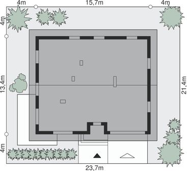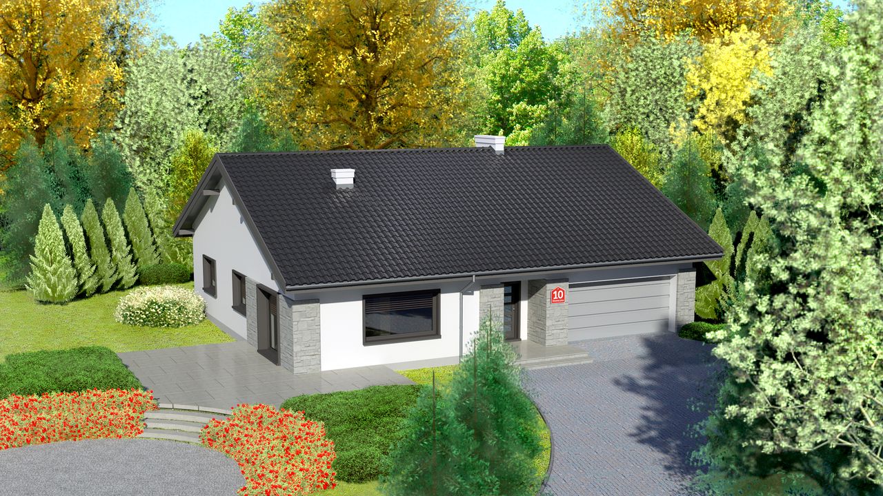 Graficzne opracowanie rzutów poglądowych widocznych na karcie projektu zostało wykonane przez Extradom.pl. Prezentowane przez Extradom.pl wizualizacje wykonane zostały przez autora projektu i należy poczytywać je jedynie za przykład i propozycję wykończenia, wizję architektoniczną autora projektu. Ostateczne wykończenie budynku może nastąpić na wiele sposobów. Szczegółowe rozwiązania zastosowane w oferowanej dokumentacji - w tym również ilość, lokalizacje i wygląd okien, drzwi, kominów - mogą w niewielkim stopniu różnić się od prezentowanej wizualizacji budynku.