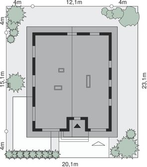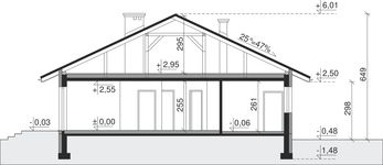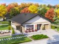 Graficzne opracowanie rzutów poglądowych widocznych na karcie projektu zostało wykonane przez Extradom.pl. Prezentowane przez Extradom.pl wizualizacje wykonane zostały przez autora projektu i należy poczytywać je jedynie za przykład i propozycję wykończenia, wizję architektoniczną autora projektu. Ostateczne wykończenie budynku może nastąpić na wiele sposobów. Szczegółowe rozwiązania zastosowane w oferowanej dokumentacji - w tym również ilość, lokalizacje i wygląd okien, drzwi, kominów - mogą w niewielkim stopniu różnić się od prezentowanej wizualizacji budynku.