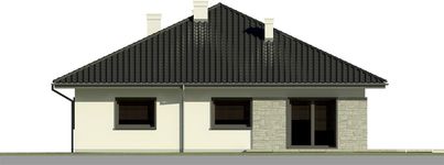 Graficzne opracowanie rzutów poglądowych widocznych na karcie projektu zostało wykonane przez Extradom.pl. Prezentowane przez Extradom.pl wizualizacje wykonane zostały przez autora projektu i należy poczytywać je jedynie za przykład i propozycję wykończenia, wizję architektoniczną autora projektu. Ostateczne wykończenie budynku może nastąpić na wiele sposobów. Szczegółowe rozwiązania zastosowane w oferowanej dokumentacji - w tym również ilość, lokalizacje i wygląd okien, drzwi, kominów - mogą w niewielkim stopniu różnić się od prezentowanej wizualizacji budynku.