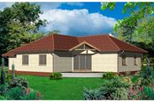 Graficzne opracowanie rzutów poglądowych widocznych na karcie projektu zostało wykonane przez Extradom.pl. Prezentowane przez Extradom.pl wizualizacje wykonane zostały przez autora projektu i należy poczytywać je jedynie za przykład i propozycję wykończenia, wizję architektoniczną autora projektu. Ostateczne wykończenie budynku może nastąpić na wiele sposobów. Szczegółowe rozwiązania zastosowane w oferowanej dokumentacji - w tym również ilość, lokalizacje i wygląd okien, drzwi, kominów - mogą w niewielkim stopniu różnić się od prezentowanej wizualizacji budynku.