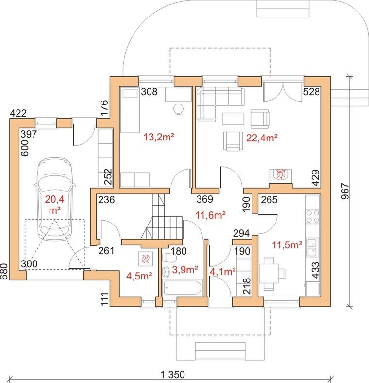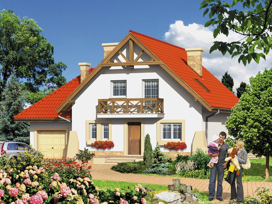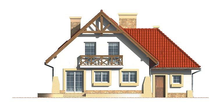 Graficzne opracowanie rzutów poglądowych widocznych na karcie projektu zostało wykonane przez Extradom.pl. Prezentowane przez Extradom.pl wizualizacje wykonane zostały przez autora projektu i należy poczytywać je jedynie za przykład i propozycję wykończenia, wizję architektoniczną autora projektu. Ostateczne wykończenie budynku może nastąpić na wiele sposobów. Szczegółowe rozwiązania zastosowane w oferowanej dokumentacji - w tym również ilość, lokalizacje i wygląd okien, drzwi, kominów - mogą w niewielkim stopniu różnić się od prezentowanej wizualizacji budynku.