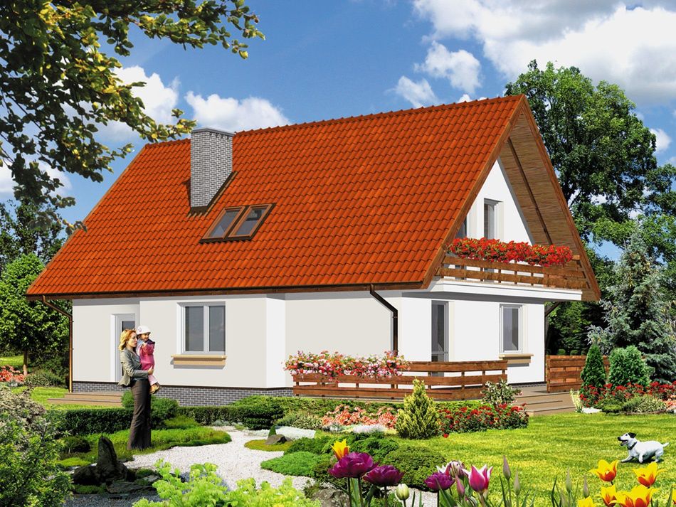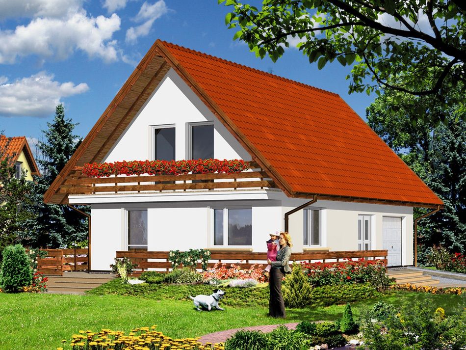 Graficzne opracowanie rzutów poglądowych widocznych na karcie projektu zostało wykonane przez Extradom.pl. Prezentowane przez Extradom.pl wizualizacje wykonane zostały przez autora projektu i należy poczytywać je jedynie za przykład i propozycję wykończenia, wizję architektoniczną autora projektu. Ostateczne wykończenie budynku może nastąpić na wiele sposobów. Szczegółowe rozwiązania zastosowane w oferowanej dokumentacji - w tym również ilość, lokalizacje i wygląd okien, drzwi, kominów - mogą w niewielkim stopniu różnić się od prezentowanej wizualizacji budynku.