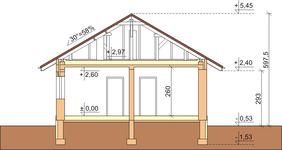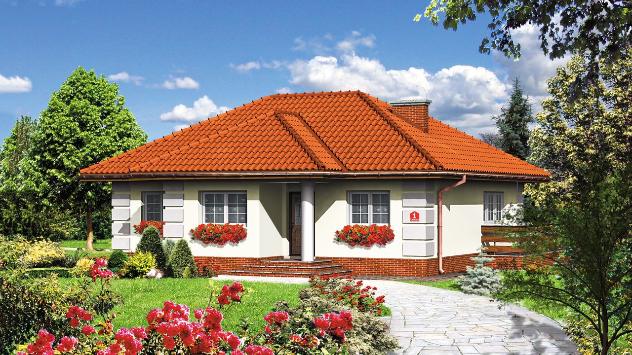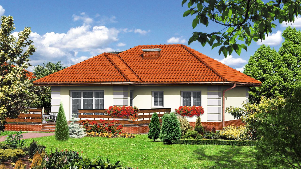 Ściany zewnętrzne: pustak ceramiczny 44 cm. Ściany nośne: pustak ceramiczny 25cm. Strop: monolityczny żelbetowy. Dach: kąt nachylenia 30°, pokrycie - dachówka ceramiczna lub betonowa.