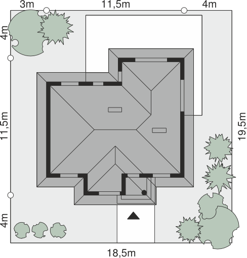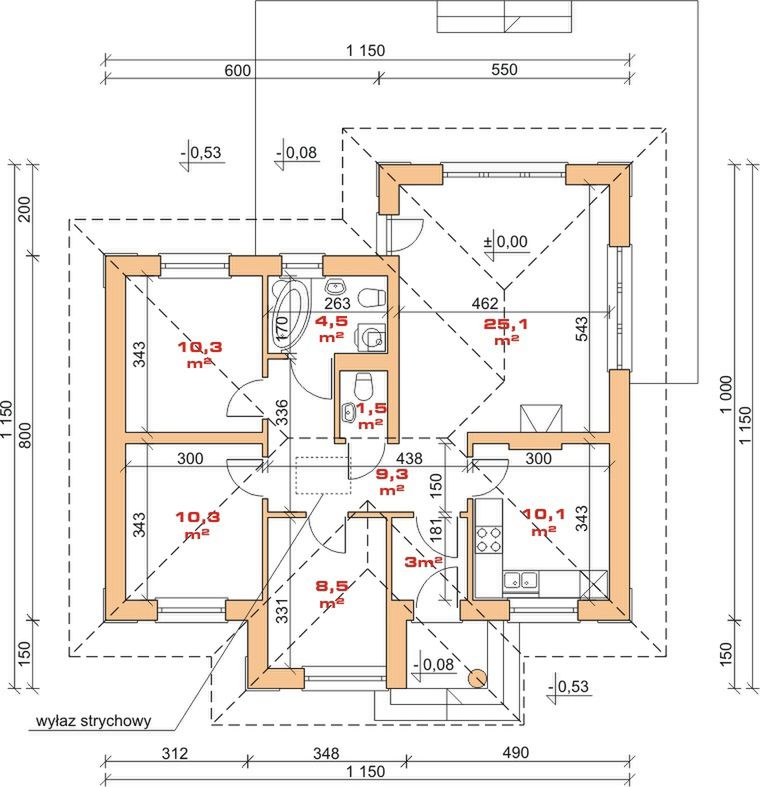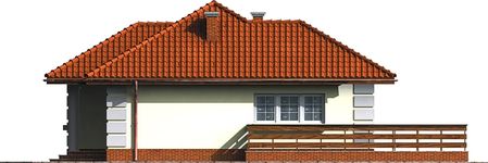 Graficzne opracowanie rzutów poglądowych widocznych na karcie projektu zostało wykonane przez Extradom.pl. Prezentowane przez Extradom.pl wizualizacje wykonane zostały przez autora projektu i należy poczytywać je jedynie za przykład i propozycję wykończenia, wizję architektoniczną autora projektu. Ostateczne wykończenie budynku może nastąpić na wiele sposobów. Szczegółowe rozwiązania zastosowane w oferowanej dokumentacji - w tym również ilość, lokalizacje i wygląd okien, drzwi, kominów - mogą w niewielkim stopniu różnić się od prezentowanej wizualizacji budynku.