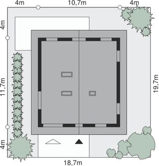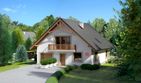 Graficzne opracowanie rzutów poglądowych widocznych na karcie projektu zostało wykonane przez Extradom.pl. Prezentowane przez Extradom.pl wizualizacje wykonane zostały przez autora projektu i należy poczytywać je jedynie za przykład i propozycję wykończenia, wizję architektoniczną autora projektu. Ostateczne wykończenie budynku może nastąpić na wiele sposobów. Szczegółowe rozwiązania zastosowane w oferowanej dokumentacji - w tym również ilość, lokalizacje i wygląd okien, drzwi, kominów - mogą w niewielkim stopniu różnić się od prezentowanej wizualizacji budynku.