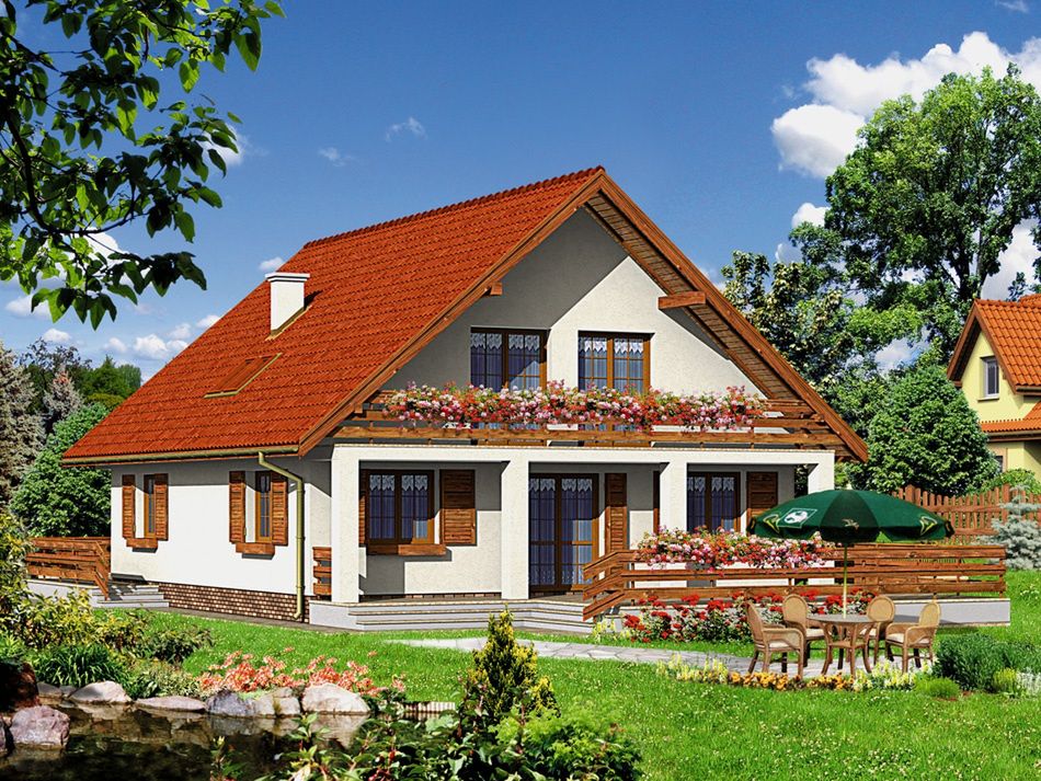 Zdecydowaliśmy się na projekt domu Dom przy Wiązowej KRK1043, gdyż zależało nam na prostym dachu i całej bryle domu. Pasowała nam także ilość i układ pomieszczeń wewnątrz domu. Budowa poszła bardzo sprawnie, nie było kłopotów z wykonawcami ani z projektem. Salon z kuchnią jest na zachód, wejście mamy od wschodu, dzięki takiemu umieszczeniu domu na działce w pomieszczeniach zawsze mamy naturalne światło dzienne. Piec mamy na drewno, z kosztów jakie ponosimy jesteśmy bardzo zadowoleni.Wprowadziliśmy kilka zmian do projektu domu Dom przy Wiązowej KRK1043, a mianowicie umieściliśmy kuchnię obok salonu i połączyliśmy razem te pomieszczenia. Jest to serce naszego domu. Możemy tam teraz przyjmować gości (w święta gościliśmy 48 osób). Miło jest tam spędzać czas, teraz jest bardzo funkcjonalnie, była to bardzo dobra decyzja. Nasza sypialnia znajduje się na dole w miejscu, gdzie miała być kuchnia. I jeszcze na górze były trzy pokoje, a teraz są cztery. Jeszcze nie zrobiliśmy okien dachowych nad schodami (gdyż byłby problem z utrzymaniem ich w czystości). Mamy okno na półpiętrze. Uważam, że modyfikacje jakie wprowadziliśmy zmieniły nasz dom na bardziej rodzinny, przytulny i funkcjonalny.Układ pomieszczeń po naszych zmianach jest idealny, już teraz bym nic nie zmieniła. Jesteśmy pięcioosobową rodziną, dom nadaje się znakomicie nawet na więcej osób. Oczywiście, z perspektywy czasu mogę polecić projekt domu parterowego z poddaszem użytkowym Dom przy Wiązowej KRK1043, mieszka się wspaniale. Wprowadzone przez nas modyfikacje są świetne, warto się zastanowić nad tymi rozwiązaniami. Pozdrawiam.