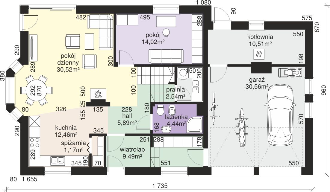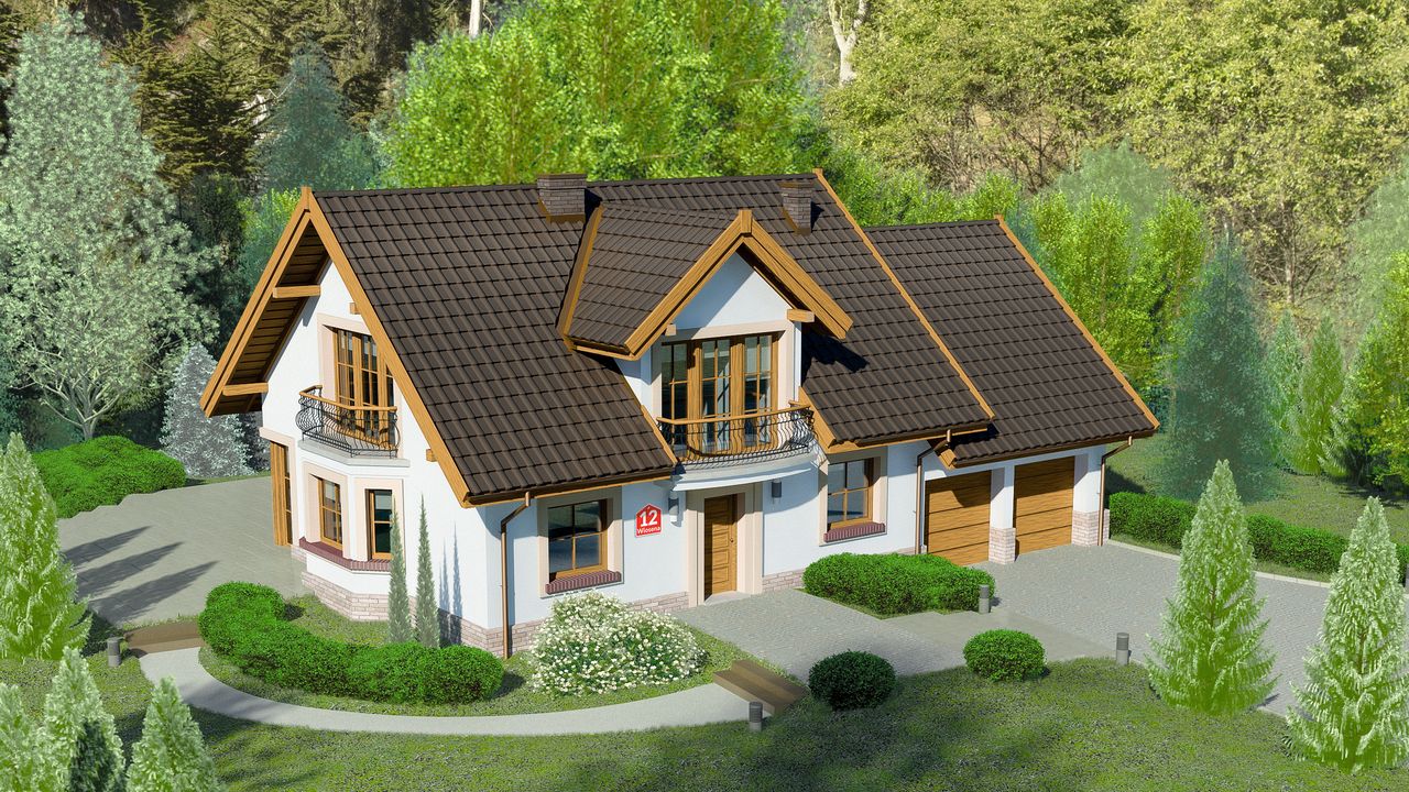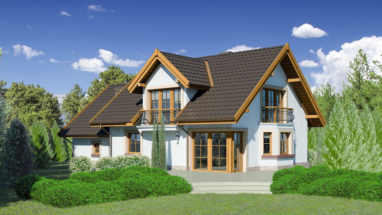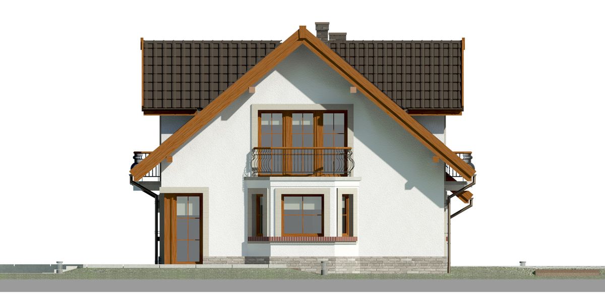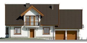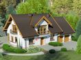 Graficzne opracowanie rzutów poglądowych widocznych na karcie projektu zostało wykonane przez Extradom.pl. Prezentowane przez Extradom.pl wizualizacje wykonane zostały przez autora projektu i należy poczytywać je jedynie za przykład i propozycję wykończenia, wizję architektoniczną autora projektu. Ostateczne wykończenie budynku może nastąpić na wiele sposobów. Szczegółowe rozwiązania zastosowane w oferowanej dokumentacji - w tym również ilość, lokalizacje i wygląd okien, drzwi, kominów - mogą w niewielkim stopniu różnić się od prezentowanej wizualizacji budynku.