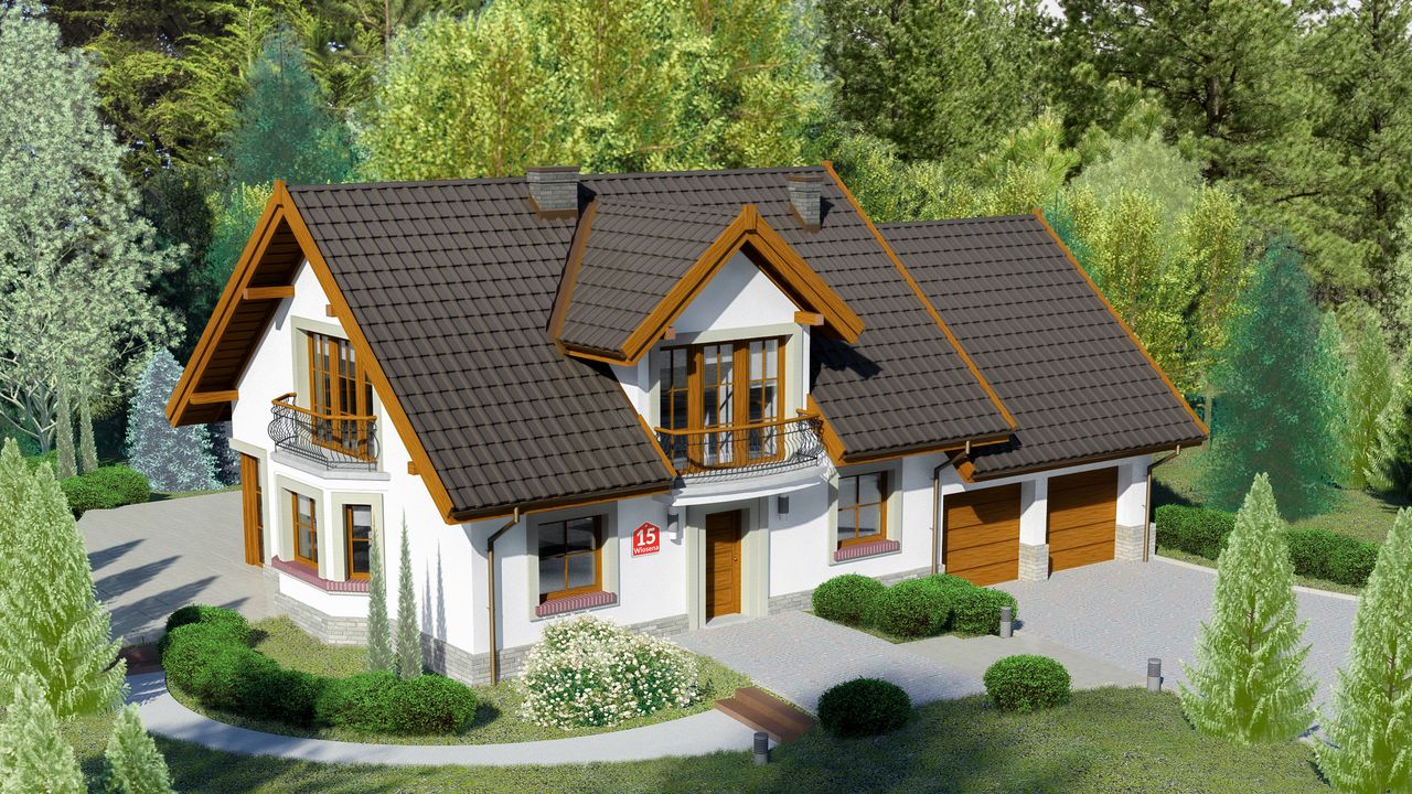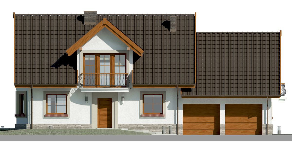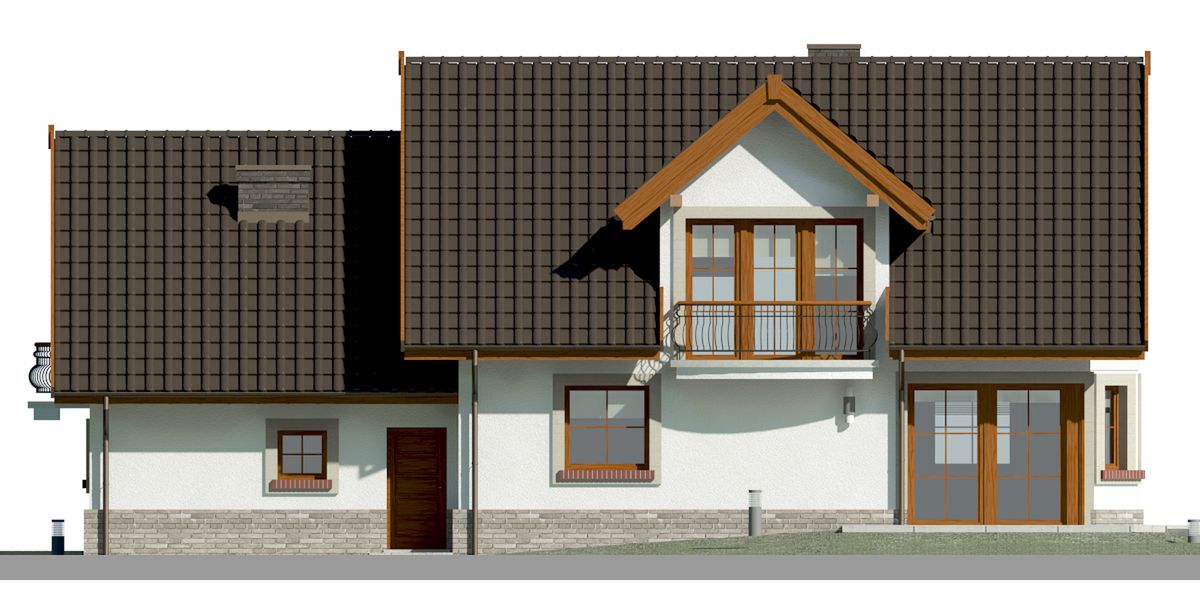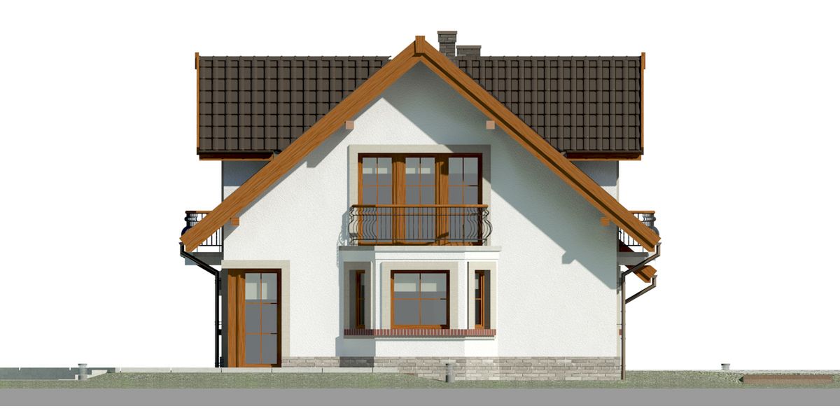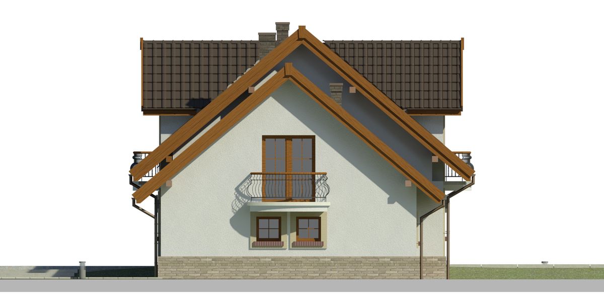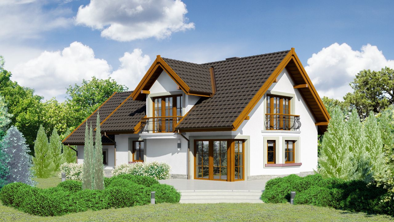 Graficzne opracowanie rzutów poglądowych widocznych na karcie projektu zostało wykonane przez Extradom.pl. Prezentowane przez Extradom.pl wizualizacje wykonane zostały przez autora projektu i należy poczytywać je jedynie za przykład i propozycję wykończenia, wizję architektoniczną autora projektu. Ostateczne wykończenie budynku może nastąpić na wiele sposobów. Szczegółowe rozwiązania zastosowane w oferowanej dokumentacji - w tym również ilość, lokalizacje i wygląd okien, drzwi, kominów - mogą w niewielkim stopniu różnić się od prezentowanej wizualizacji budynku.