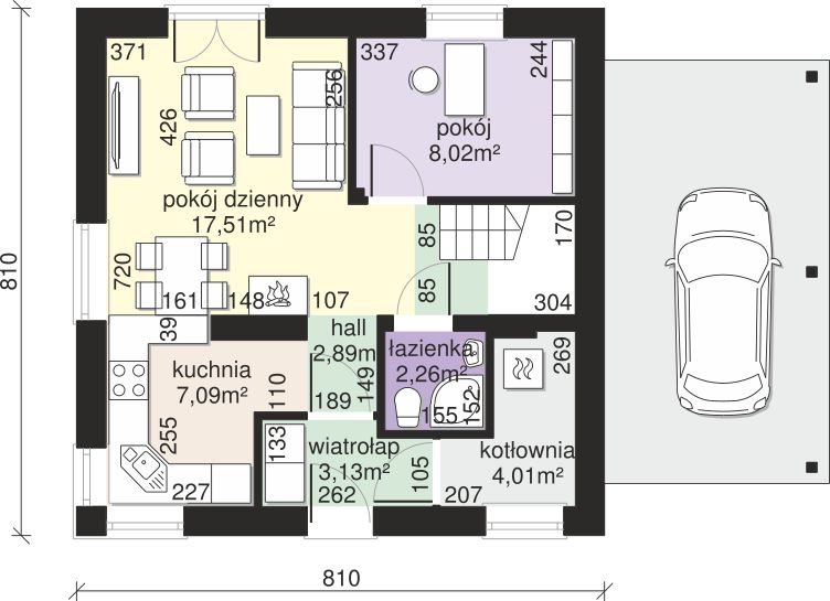 Graficzne opracowanie rzutów poglądowych widocznych na karcie projektu zostało wykonane przez Extradom.pl. Prezentowane przez Extradom.pl wizualizacje wykonane zostały przez autora projektu i należy poczytywać je jedynie za przykład i propozycję wykończenia, wizję architektoniczną autora projektu. Ostateczne wykończenie budynku może nastąpić na wiele sposobów. Szczegółowe rozwiązania zastosowane w oferowanej dokumentacji - w tym również ilość, lokalizacje i wygląd okien, drzwi, kominów - mogą w niewielkim stopniu różnić się od prezentowanej wizualizacji budynku.