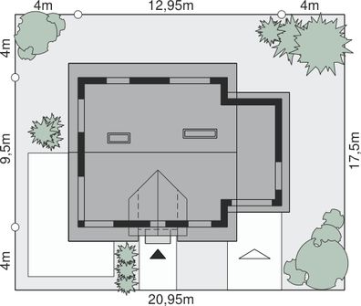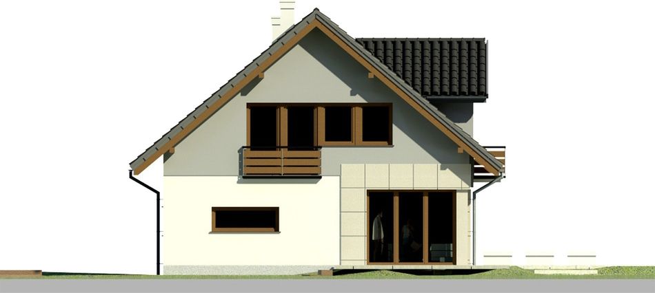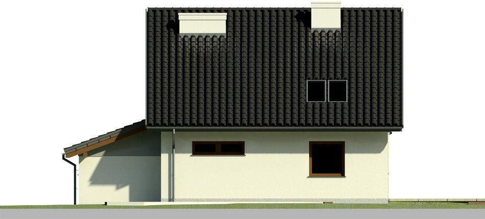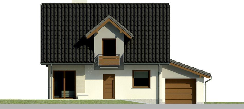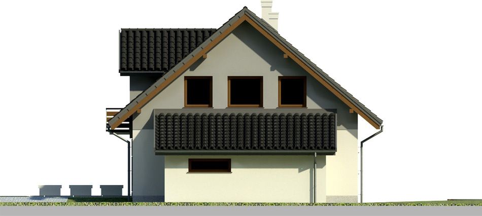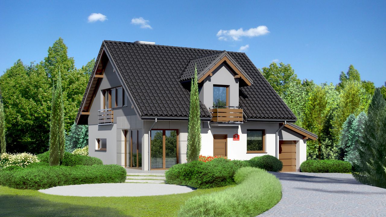 Graficzne opracowanie rzutów poglądowych widocznych na karcie projektu zostało wykonane przez Extradom.pl. Prezentowane przez Extradom.pl wizualizacje wykonane zostały przez autora projektu i należy poczytywać je jedynie za przykład i propozycję wykończenia, wizję architektoniczną autora projektu. Ostateczne wykończenie budynku może nastąpić na wiele sposobów. Szczegółowe rozwiązania zastosowane w oferowanej dokumentacji - w tym również ilość, lokalizacje i wygląd okien, drzwi, kominów - mogą w niewielkim stopniu różnić się od prezentowanej wizualizacji budynku.