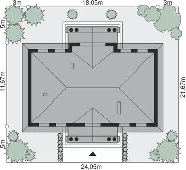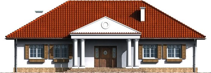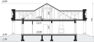 Graficzne opracowanie rzutów poglądowych widocznych na karcie projektu zostało wykonane przez Extradom.pl. Prezentowane przez Extradom.pl wizualizacje wykonane zostały przez autora projektu i należy poczytywać je jedynie za przykład i propozycję wykończenia, wizję architektoniczną autora projektu. Ostateczne wykończenie budynku może nastąpić na wiele sposobów. Szczegółowe rozwiązania zastosowane w oferowanej dokumentacji - w tym również ilość, lokalizacje i wygląd okien, drzwi, kominów - mogą w niewielkim stopniu różnić się od prezentowanej wizualizacji budynku.