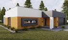 Graficzne opracowanie rzutów poglądowych widocznych na karcie projektu zostało wykonane przez Extradom.pl. Prezentowane przez Extradom.pl wizualizacje wykonane zostały przez autora projektu i należy poczytywać je jedynie za przykład i propozycję wykończenia, wizję architektoniczną autora projektu. Ostateczne wykończenie budynku może nastąpić na wiele sposobów. Szczegółowe rozwiązania zastosowane w oferowanej dokumentacji - w tym również ilość, lokalizacje i wygląd okien, drzwi, kominów - mogą w niewielkim stopniu różnić się od prezentowanej wizualizacji budynku.