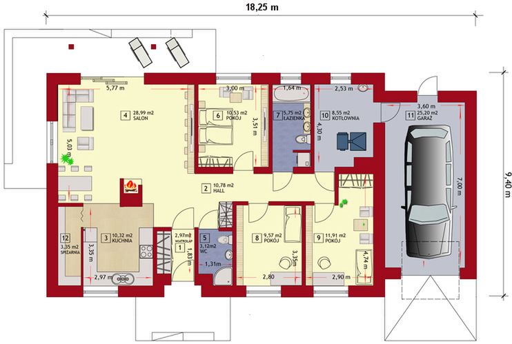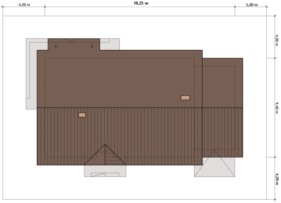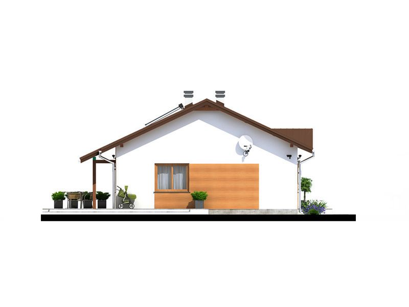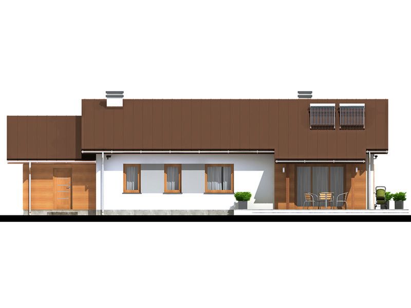 Graficzne opracowanie rzutów poglądowych widocznych na karcie projektu zostało wykonane przez Extradom.pl. Prezentowane przez Extradom.pl wizualizacje wykonane zostały przez autora projektu i należy poczytywać je jedynie za przykład i propozycję wykończenia, wizję architektoniczną autora projektu. Ostateczne wykończenie budynku może nastąpić na wiele sposobów. Szczegółowe rozwiązania zastosowane w oferowanej dokumentacji - w tym również ilość, lokalizacje i wygląd okien, drzwi, kominów - mogą w niewielkim stopniu różnić się od prezentowanej wizualizacji budynku.