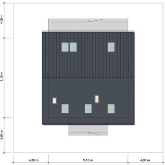 Graficzne opracowanie rzutów poglądowych widocznych na karcie projektu zostało wykonane przez Extradom.pl. Prezentowane przez Extradom.pl wizualizacje wykonane zostały przez autora projektu i należy poczytywać je jedynie za przykład i propozycję wykończenia, wizję architektoniczną autora projektu. Ostateczne wykończenie budynku może nastąpić na wiele sposobów. Szczegółowe rozwiązania zastosowane w oferowanej dokumentacji - w tym również ilość, lokalizacje i wygląd okien, drzwi, kominów - mogą w niewielkim stopniu różnić się od prezentowanej wizualizacji budynku.