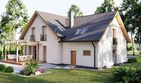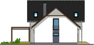 Graficzne opracowanie rzutów poglądowych widocznych na karcie projektu zostało wykonane przez Extradom.pl. Prezentowane przez Extradom.pl wizualizacje wykonane zostały przez autora projektu i należy poczytywać je jedynie za przykład i propozycję wykończenia, wizję architektoniczną autora projektu. Ostateczne wykończenie budynku może nastąpić na wiele sposobów. Szczegółowe rozwiązania zastosowane w oferowanej dokumentacji - w tym również ilość, lokalizacje i wygląd okien, drzwi, kominów - mogą w niewielkim stopniu różnić się od prezentowanej wizualizacji budynku.