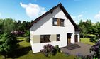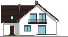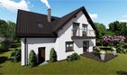 Graficzne opracowanie rzutów poglądowych widocznych na karcie projektu zostało wykonane przez Extradom.pl. Prezentowane przez Extradom.pl wizualizacje wykonane zostały przez autora projektu i należy poczytywać je jedynie za przykład i propozycję wykończenia, wizję architektoniczną autora projektu. Ostateczne wykończenie budynku może nastąpić na wiele sposobów. Szczegółowe rozwiązania zastosowane w oferowanej dokumentacji - w tym również ilość, lokalizacje i wygląd okien, drzwi, kominów - mogą w niewielkim stopniu różnić się od prezentowanej wizualizacji budynku.