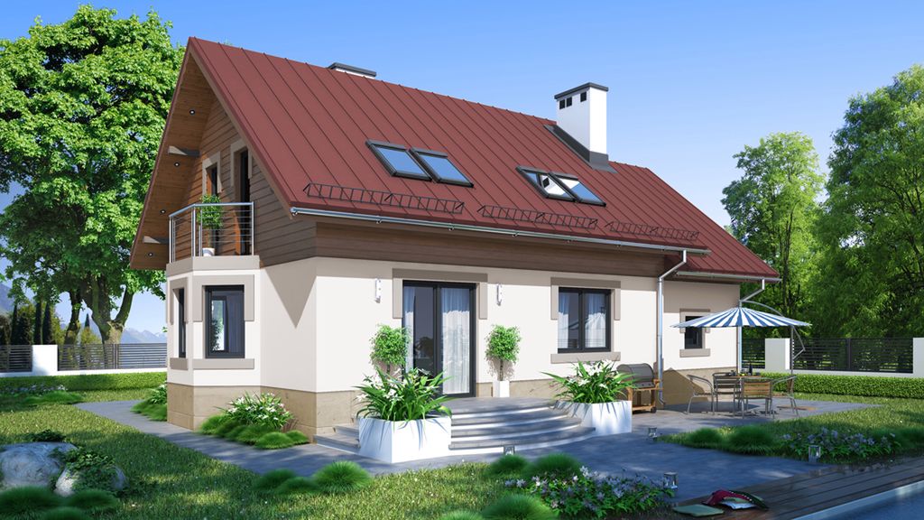 Wraz z żoną zdecydowaliśmy się na realizację projektu domu parterowego z poddaszem użytkowym Dom w Oregonie 3 KRN1059. Od początku zależało nam na niezbyt dużym, a jednocześnie przestronnym i w pełni komfortowym domu, więc metraż 120 m² wydał się nam optymalny. Dodatkowo, uwzględniony w nim układ pomieszczeń został funkcjonalnie zaplanowany i w całości spełniał nasze oczekiwania, tym bardziej że jednym z kryteriów przy wyborze były duże wymiary salonu.Jestem zadowolony z przebiegu inwestycji. Postawieniem budynku zajęli się doświadczeni fachowcy, którzy sprawnie działali na każdym etapie, zaś wykończenia robiliśmy sami z pomocą mojego teścia. Jedyna niejasność na jaką natrafiliśmy w trakcie budowy, dotyczyła belek tworzących więźbę w miejscu obok którego wychodził komin, które musieliśmy dodatkowo wzmocnić. Całą realizację udało nam się zakończyć naprawdę szybko - łącznie z pracami wykończeniowymi trwała 1 rok i 2 miesiące. Do postawienia ścian nowego domu użyliśmy ceramicznych pustaków Porotherm. Strop został wykonany systemem Teriva, a dach pokryliśmy dachówką. Uważam, że koszty dotyczące realizacji projektu domu z garażem Dom w Oregonie 3 KRN1059 w stanie surowym zamkniętym zostały poprawnie oszacowane. Myślę, że podana kwota jest całkiem realna i można się nią sugerować. Fachowcy stwierdzili, iż wykonując klatkę schodową zgodnie z oryginalnym projektem, wysokość stopni będzie dosyć duża. Postanowiliśmy więc zmienić nieco jej układ, na trochę bardziej półokrągłą konstrukcję. Oprócz tego, kotłownię lekko powiększyliśmy kosztem kilku centymetrów ujętych z pomieszczenia obok, zaś powierzchnię spiżarki przyłączylismy do kuchni. Zmniejszyliśmy nieco rozmiar frontowych drzwi wejściowym, dzięki czemu w wiatrołapie zyskaliśmy miejsce na szafę. Dobrym pomysłem było również powiększenie bocznego balkonu - wychodzi on ok. 30-40 cm poza wykusz, dzięki czemu woda z opadów nie ścieka po elewacji. Dodatkowo, okno tarasowe w salonie wydłużyliśmy do 2,5 m i zrobiliśmy je w formie przesównej.Innych zmian nie wprowadzaliśmy, aczkolwiek teraz pewnie zdecydowalibyśmy się na lekkie poszerzenie bryły w celu zwiększenia powierzchni salonu. Oprócz tego, myślę że warto rozważyć zmniejszenie frontowego okna balkonowego, aby uzyskać w sypialni więcej miejsca na wstawienie szafek. Projekt domu Dom w Oregonie 3 KRN1059 spełnił oczekiwania naszej rodziny i jesteśmy jak najbardziej zadowoleni z dokonanego wyboru. Nowy dom w pełni nas satysfakcjonuje i dostrzegamy w nim samym plusy ( jedyny mały minus to fakt, że z racji dużej przestronności mamy co sprzątać :-) ) Wnętrze jest funkcjonalne i komfortowe w codziennym użytkowaniu. Pozdrawiam