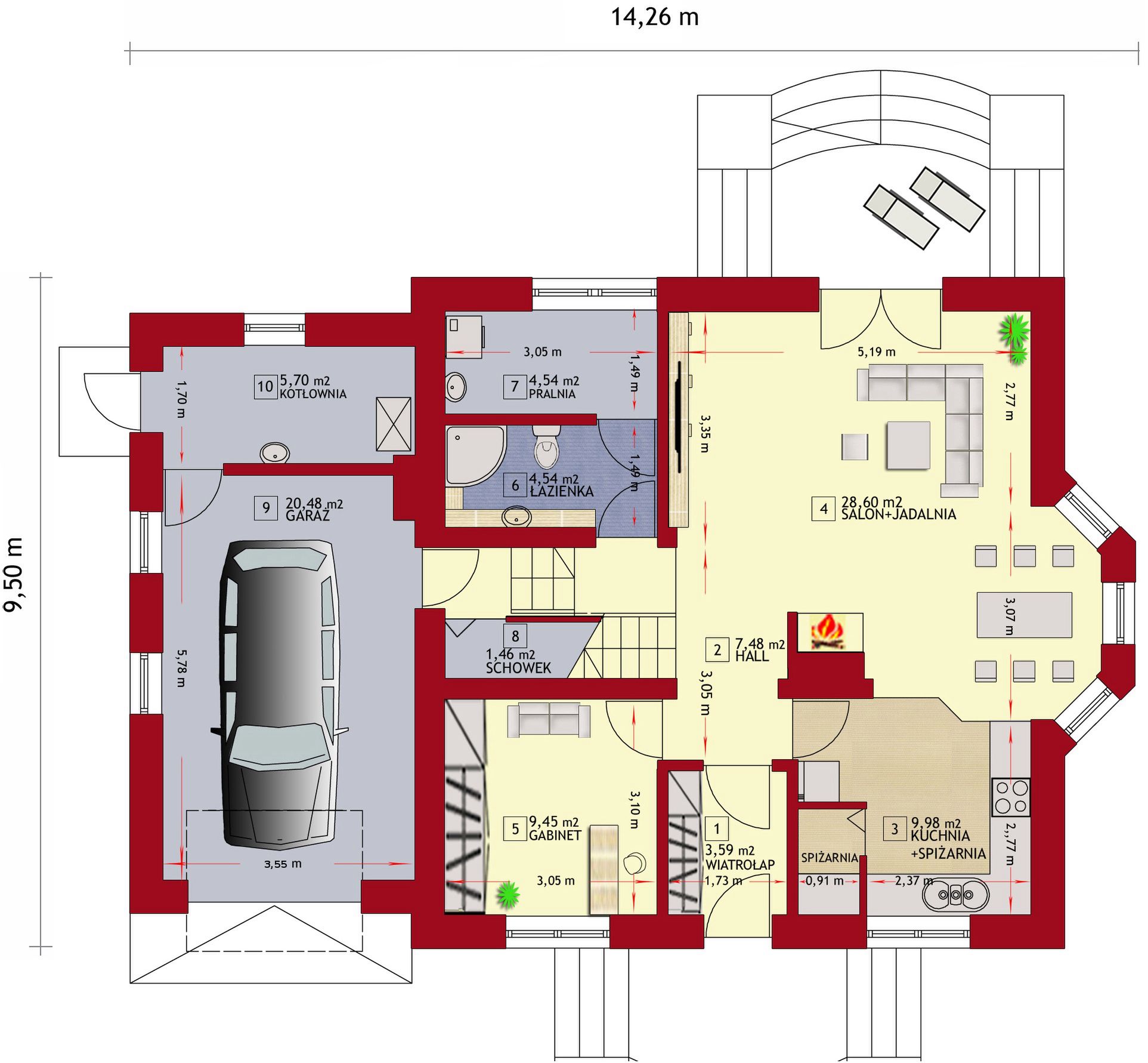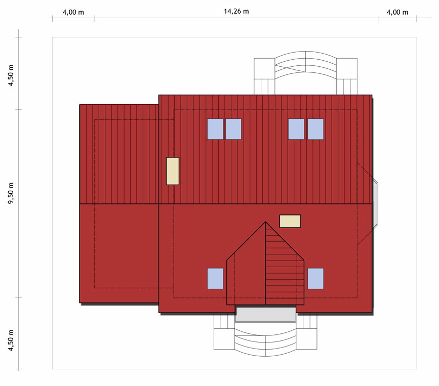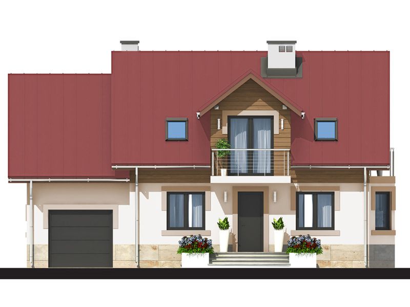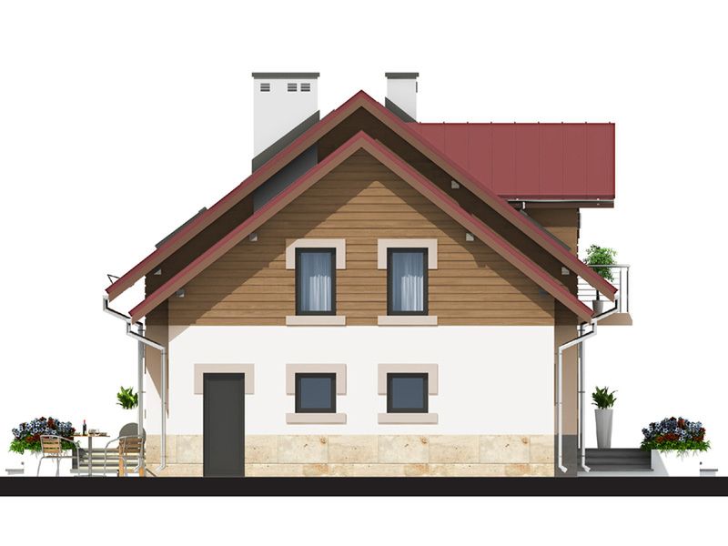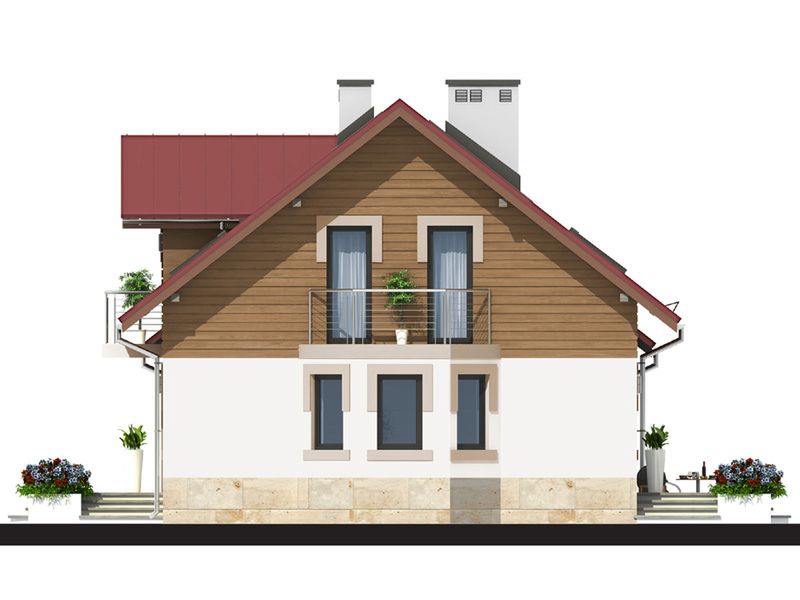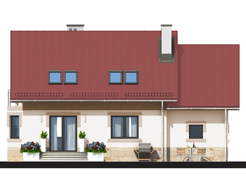 Graficzne opracowanie rzutów poglądowych widocznych na karcie projektu zostało wykonane przez Extradom.pl. Prezentowane przez Extradom.pl wizualizacje wykonane zostały przez autora projektu i należy poczytywać je jedynie za przykład i propozycję wykończenia, wizję architektoniczną autora projektu. Ostateczne wykończenie budynku może nastąpić na wiele sposobów. Szczegółowe rozwiązania zastosowane w oferowanej dokumentacji - w tym również ilość, lokalizacje i wygląd okien, drzwi, kominów - mogą w niewielkim stopniu różnić się od prezentowanej wizualizacji budynku.