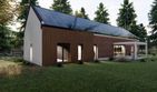 Graficzne opracowanie rzutów poglądowych widocznych na karcie projektu zostało wykonane przez Extradom.pl. Prezentowane przez Extradom.pl wizualizacje wykonane zostały przez autora projektu i należy poczytywać je jedynie za przykład i propozycję wykończenia, wizję architektoniczną autora projektu. Ostateczne wykończenie budynku może nastąpić na wiele sposobów. Szczegółowe rozwiązania zastosowane w oferowanej dokumentacji - w tym również ilość, lokalizacje i wygląd okien, drzwi, kominów - mogą w niewielkim stopniu różnić się od prezentowanej wizualizacji budynku.