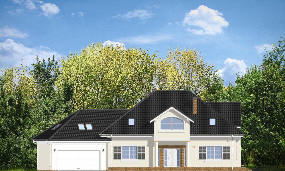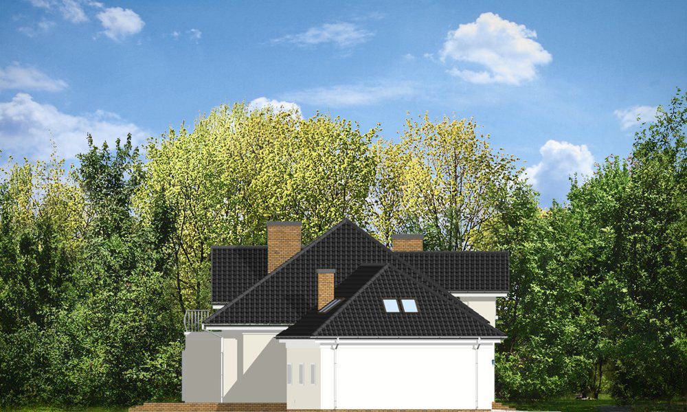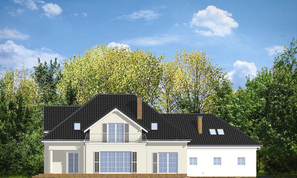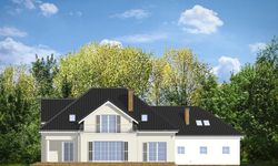 Graficzne opracowanie rzutów poglądowych widocznych na karcie projektu zostało wykonane przez Extradom.pl. Prezentowane przez Extradom.pl wizualizacje wykonane zostały przez autora projektu i należy poczytywać je jedynie za przykład i propozycję wykończenia, wizję architektoniczną autora projektu. Ostateczne wykończenie budynku może nastąpić na wiele sposobów. Szczegółowe rozwiązania zastosowane w oferowanej dokumentacji - w tym również ilość, lokalizacje i wygląd okien, drzwi, kominów - mogą w niewielkim stopniu różnić się od prezentowanej wizualizacji budynku.