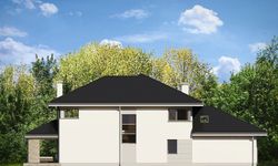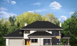 Graficzne opracowanie rzutów poglądowych widocznych na karcie projektu zostało wykonane przez Extradom.pl. Prezentowane przez Extradom.pl wizualizacje wykonane zostały przez autora projektu i należy poczytywać je jedynie za przykład i propozycję wykończenia, wizję architektoniczną autora projektu. Ostateczne wykończenie budynku może nastąpić na wiele sposobów. Szczegółowe rozwiązania zastosowane w oferowanej dokumentacji - w tym również ilość, lokalizacje i wygląd okien, drzwi, kominów - mogą w niewielkim stopniu różnić się od prezentowanej wizualizacji budynku.