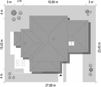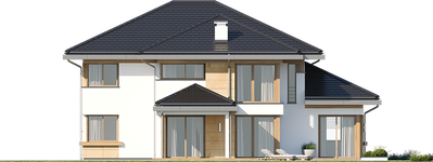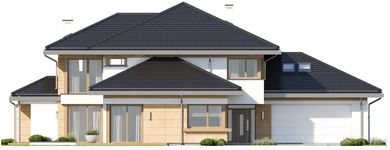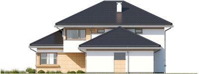 Graficzne opracowanie rzutów poglądowych widocznych na karcie projektu zostało wykonane przez Extradom.pl. Prezentowane przez Extradom.pl wizualizacje wykonane zostały przez autora projektu i należy poczytywać je jedynie za przykład i propozycję wykończenia, wizję architektoniczną autora projektu. Ostateczne wykończenie budynku może nastąpić na wiele sposobów. Szczegółowe rozwiązania zastosowane w oferowanej dokumentacji - w tym również ilość, lokalizacje i wygląd okien, drzwi, kominów - mogą w niewielkim stopniu różnić się od prezentowanej wizualizacji budynku.