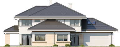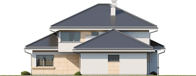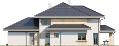 Graficzne opracowanie rzutów poglądowych widocznych na karcie projektu zostało wykonane przez Extradom.pl. Prezentowane przez Extradom.pl wizualizacje wykonane zostały przez autora projektu i należy poczytywać je jedynie za przykład i propozycję wykończenia, wizję architektoniczną autora projektu. Ostateczne wykończenie budynku może nastąpić na wiele sposobów. Szczegółowe rozwiązania zastosowane w oferowanej dokumentacji - w tym również ilość, lokalizacje i wygląd okien, drzwi, kominów - mogą w niewielkim stopniu różnić się od prezentowanej wizualizacji budynku.