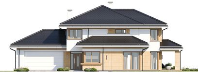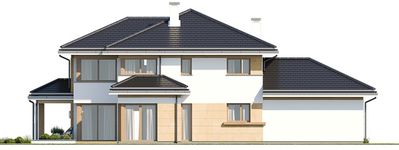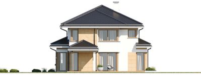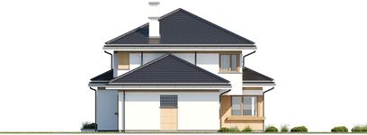 Graficzne opracowanie rzutów poglądowych widocznych na karcie projektu zostało wykonane przez Extradom.pl. Prezentowane przez Extradom.pl wizualizacje wykonane zostały przez autora projektu i należy poczytywać je jedynie za przykład i propozycję wykończenia, wizję architektoniczną autora projektu. Ostateczne wykończenie budynku może nastąpić na wiele sposobów. Szczegółowe rozwiązania zastosowane w oferowanej dokumentacji - w tym również ilość, lokalizacje i wygląd okien, drzwi, kominów - mogą w niewielkim stopniu różnić się od prezentowanej wizualizacji budynku.