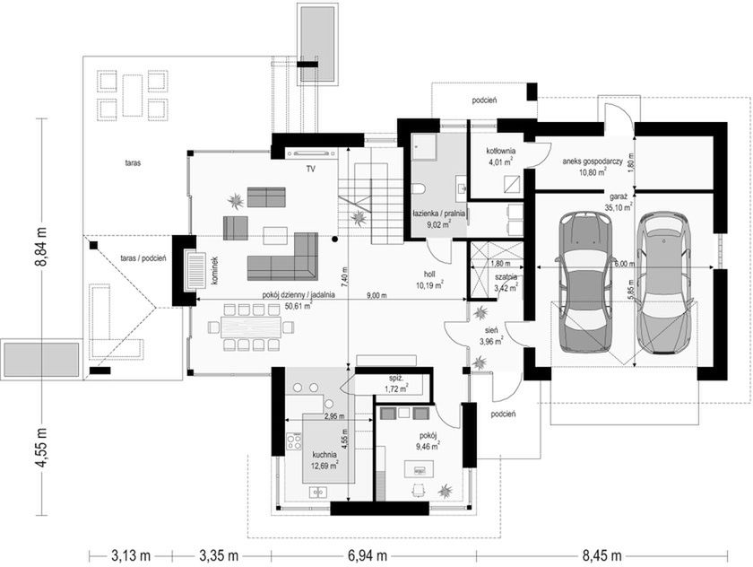 PROJEKT Z BUDOWĄ Istnieje możliwość zaadaptowania tego projektu do technologii prefabrykowanej/modułowej i budowy nawet w 6 miesięcy ze stałym kosztem budowy